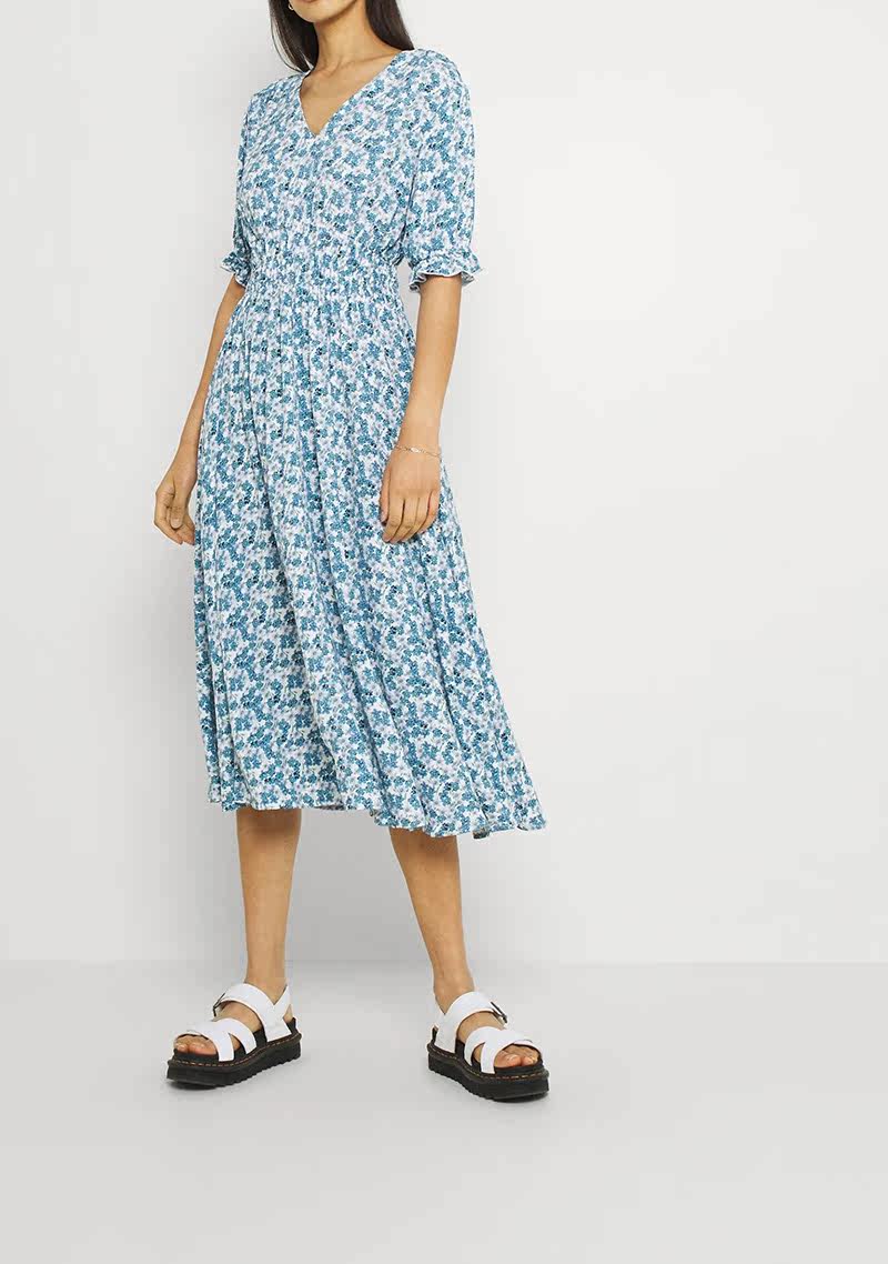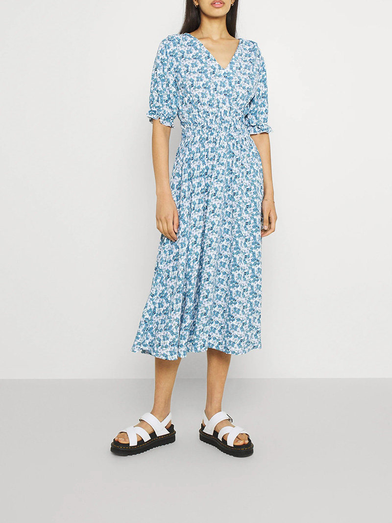 Свежее летнее дизайнерское платье, корсет, длинная юбка, французский стиль, в цветочек, тренд сезона, с открытой спиной, А-силуэт, V-образный вырез
