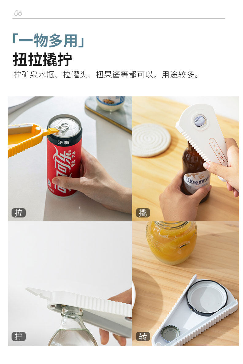 Современная домохозяйка бутылка -Открывающая артефактная скручивающая кепка и открытая крышка открывает консервированные артефакты.
