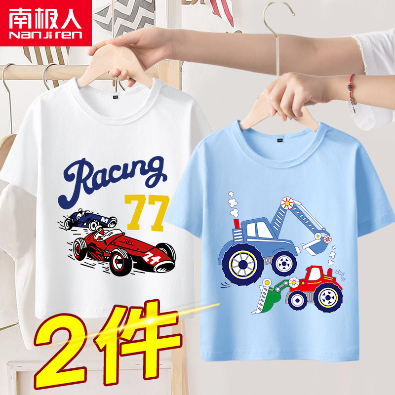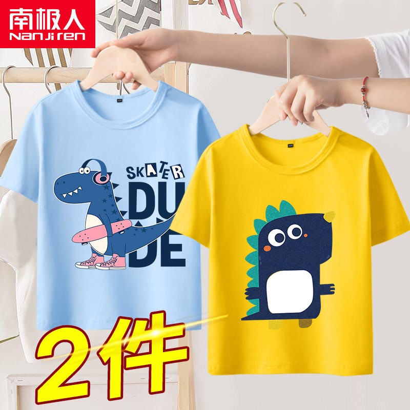 南极人 Детская летняя футболка с коротким рукавом для мальчиков, хлопковая летняя одежда, в западном стиле, свободный крой