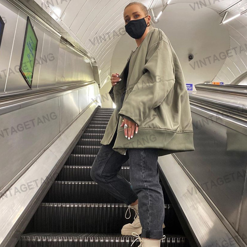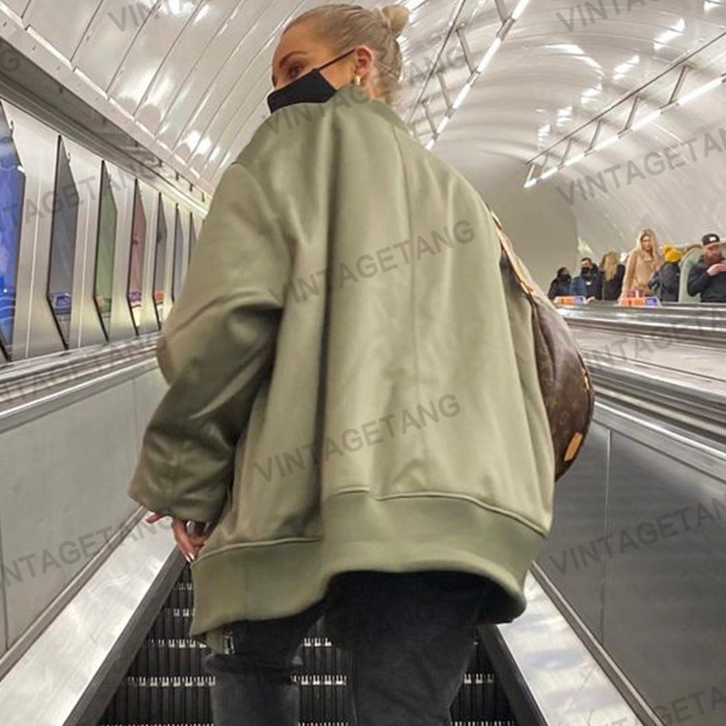 Ретро цветная зеленая куртка с круглым воротником с молнией, в американском стиле