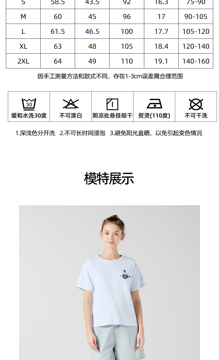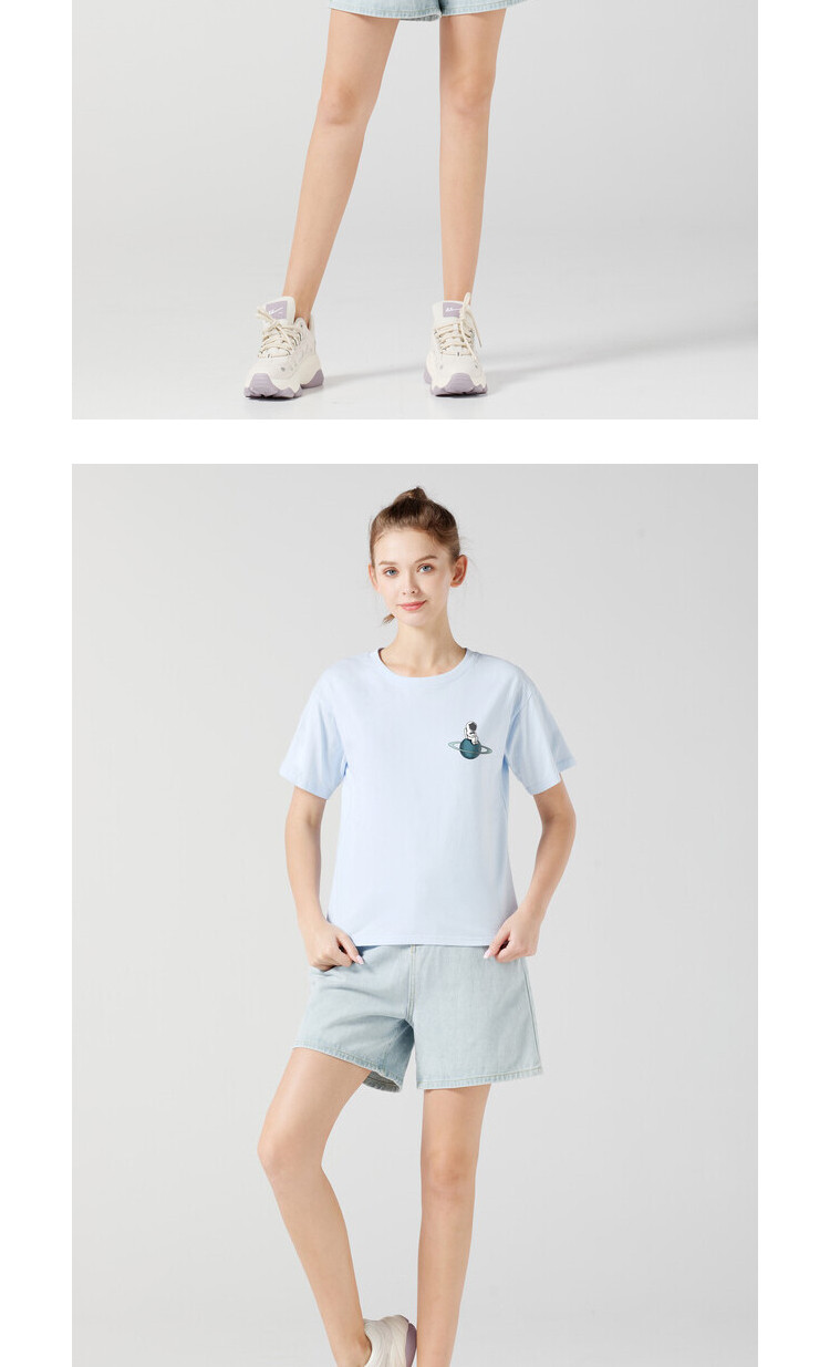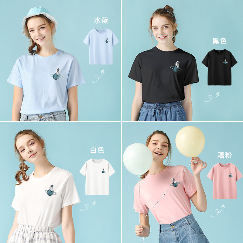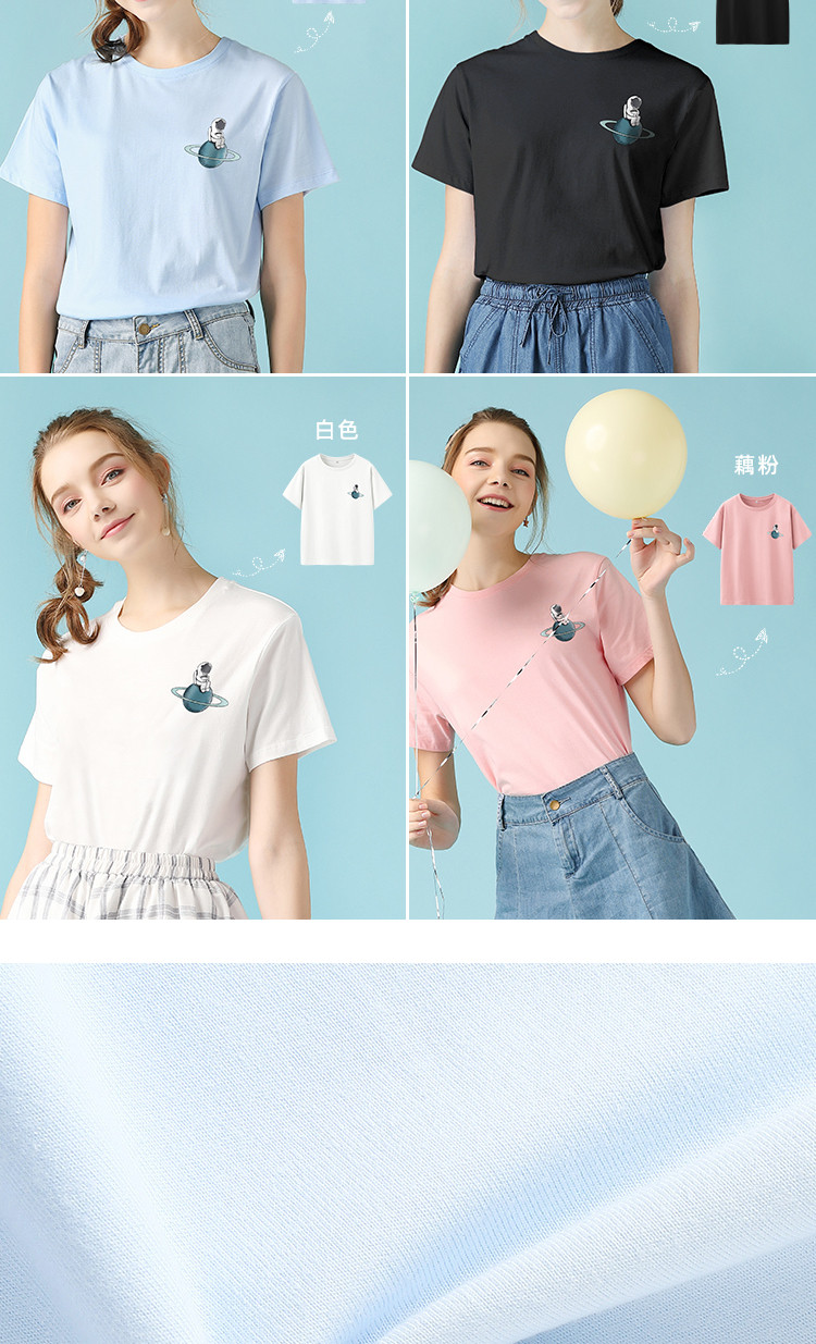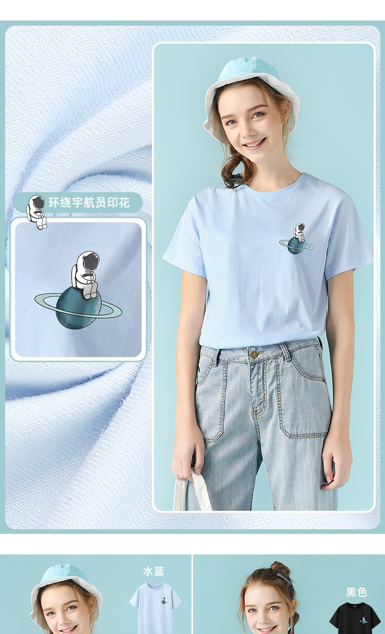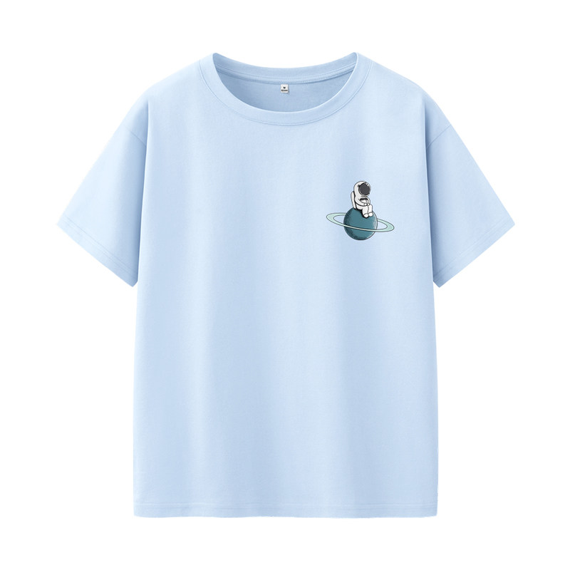 艾米恋 Хлопковая футболка с коротким рукавом, летний синий космонавт, коллекция 2022, свободный крой