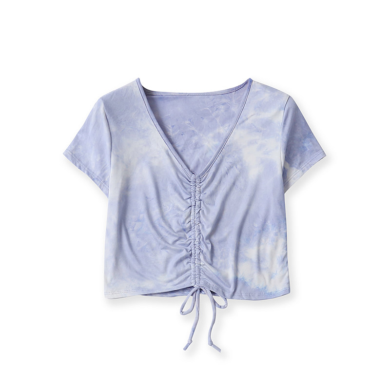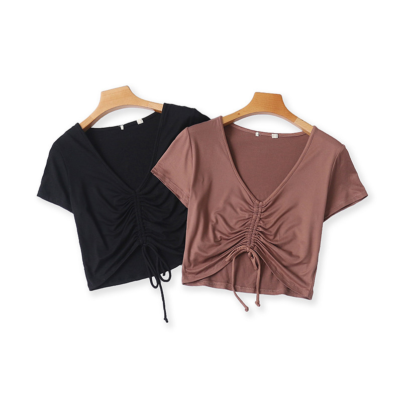 (Трансграничная торговля), летняя короткая модная эластичная футболка, V-образный вырез, короткий рукав, с рукавом, в корейском стиле