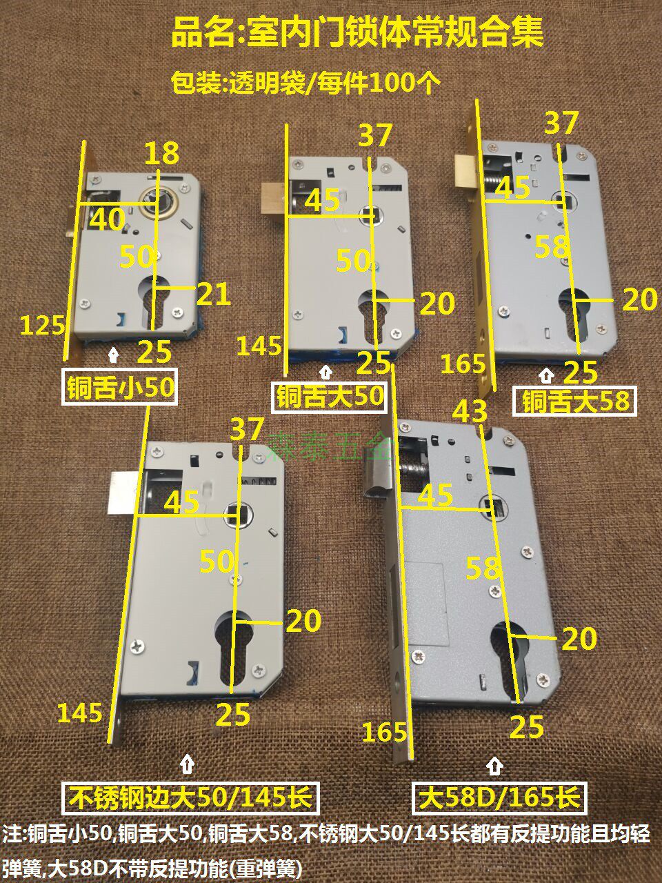 При нормальных обстоятельствах четыре блокировки маленького 50 -медного языка, большой 50 медного языка, большой 58 медный язык, из нержавеющей стали, большие 50/145, имеют кусочки пряжки и винты.
