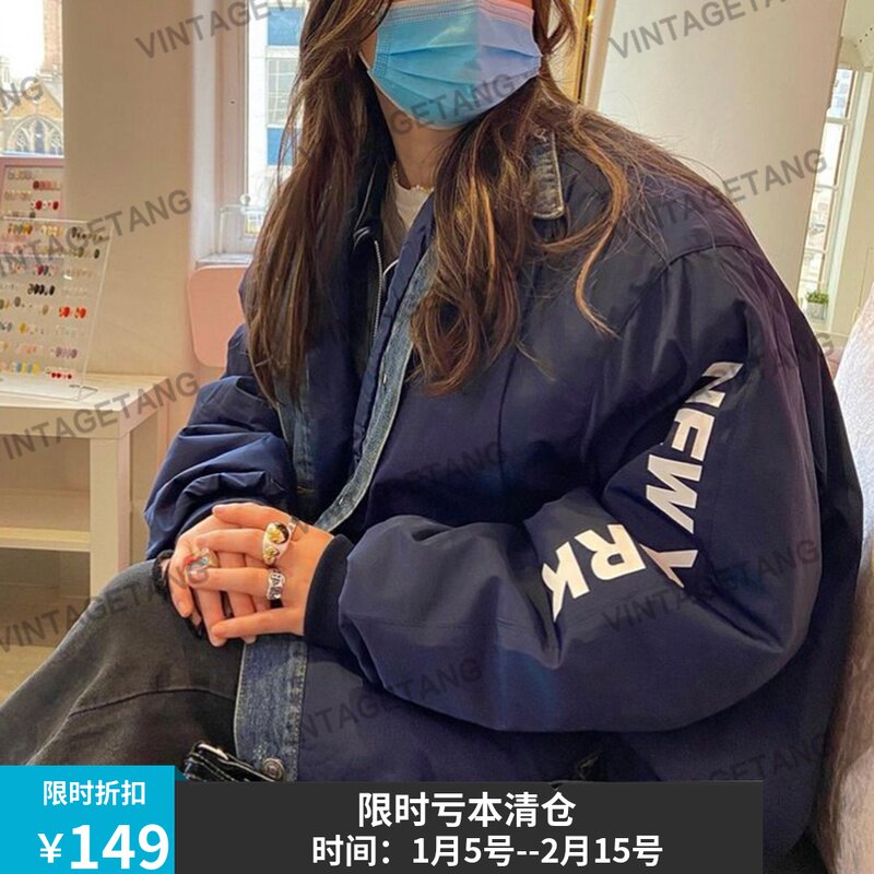 Ретро темно-синяя стеганая демисезонная куртка, пуховик, в американском стиле