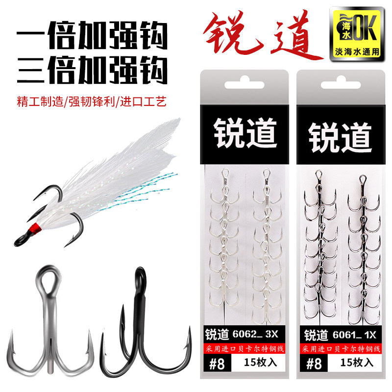 - 6#6062 версия с тройным усилением и голым крючком, 15 шт.