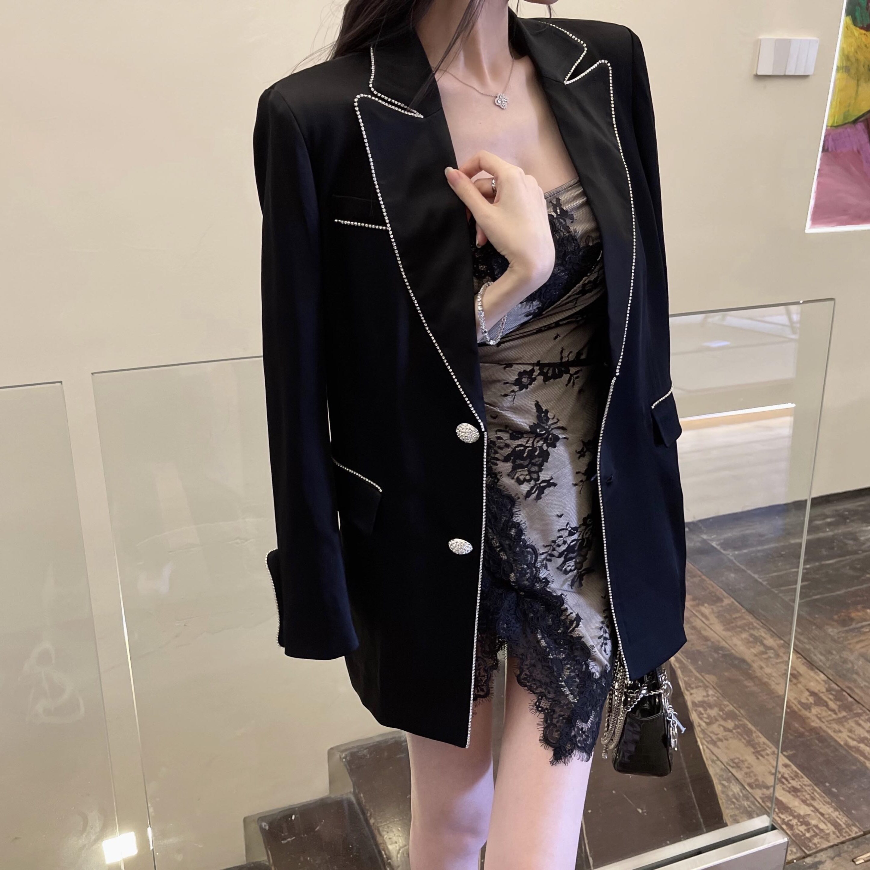 Черная весенняя осенняя белая цепь, пиджак классического кроя, популярно в интернете
