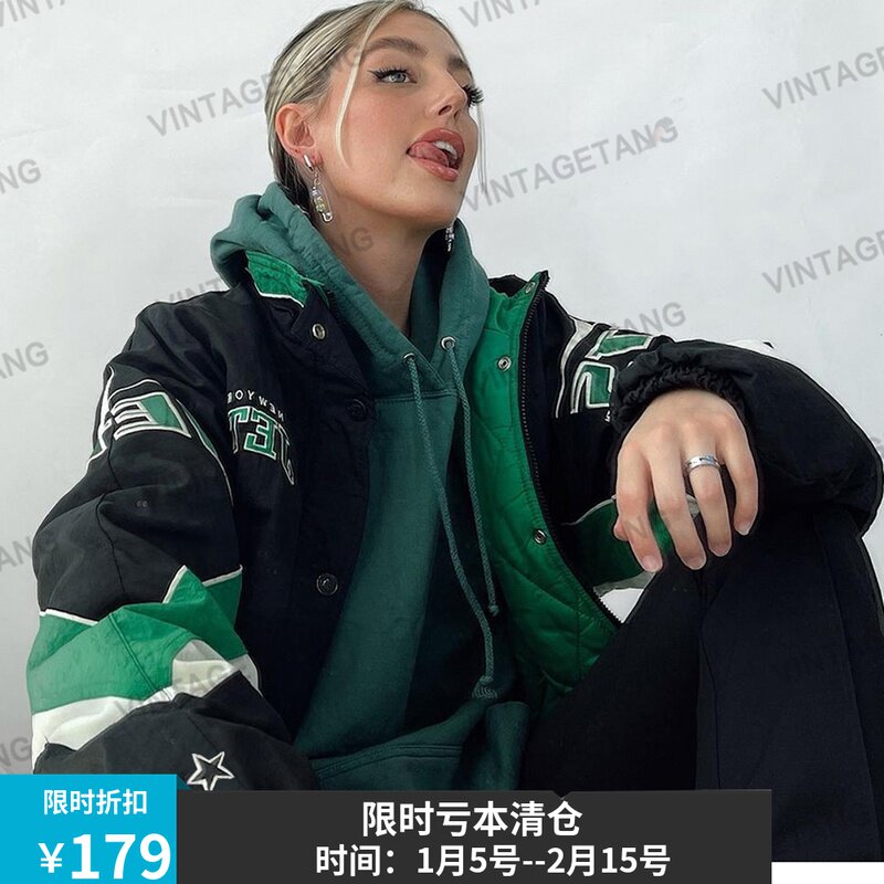 Зимние ретро зеленые стеганые ватные палочки, форма, пуховик, куртка, в американском стиле, свободный крой