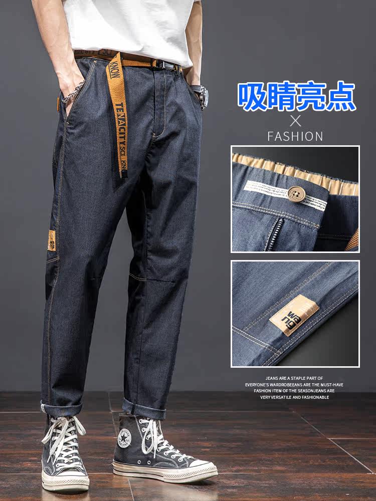 Летние джинсы, тонкие эластичные универсальные штаны, в корейском стиле, оверсайз