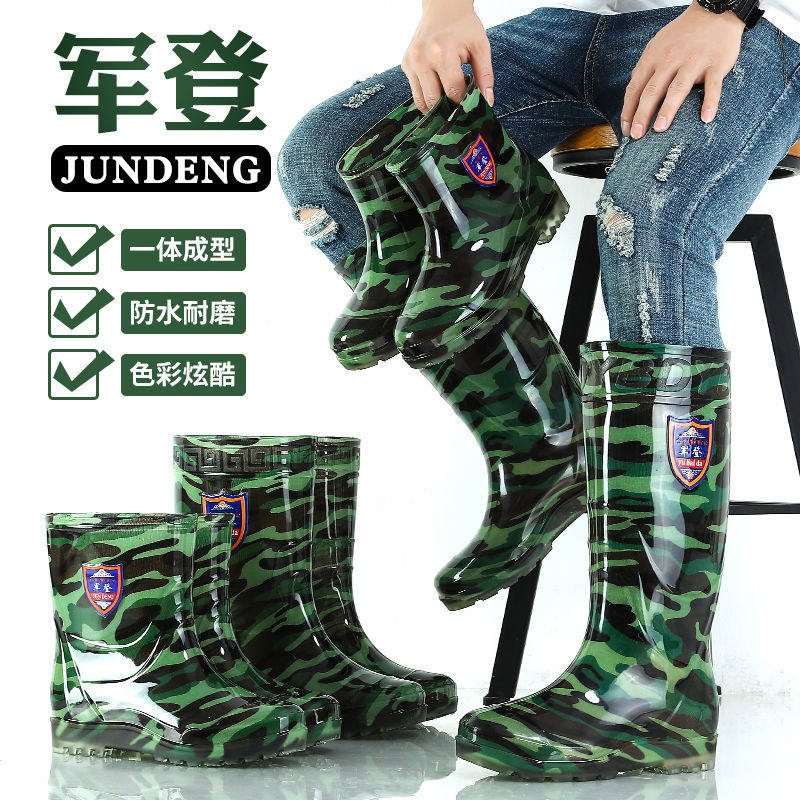 Всесезонные камуфляжные резиновые сапоги для мужчин, сухожильная подошва на толстой подошве, водонепроницаемые, нескользящие, износостойкие, резиновая обувь для мойки кухонных машин, водная обувь, резиновые сапоги для строительных площадок.
