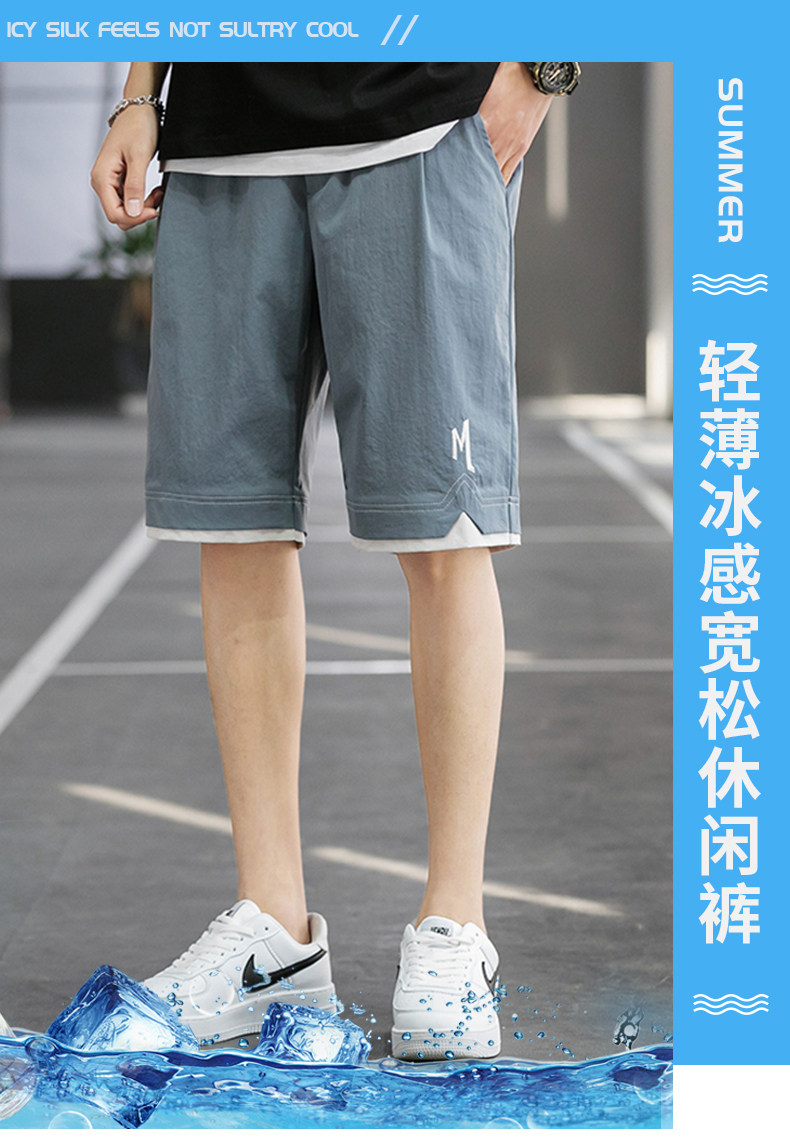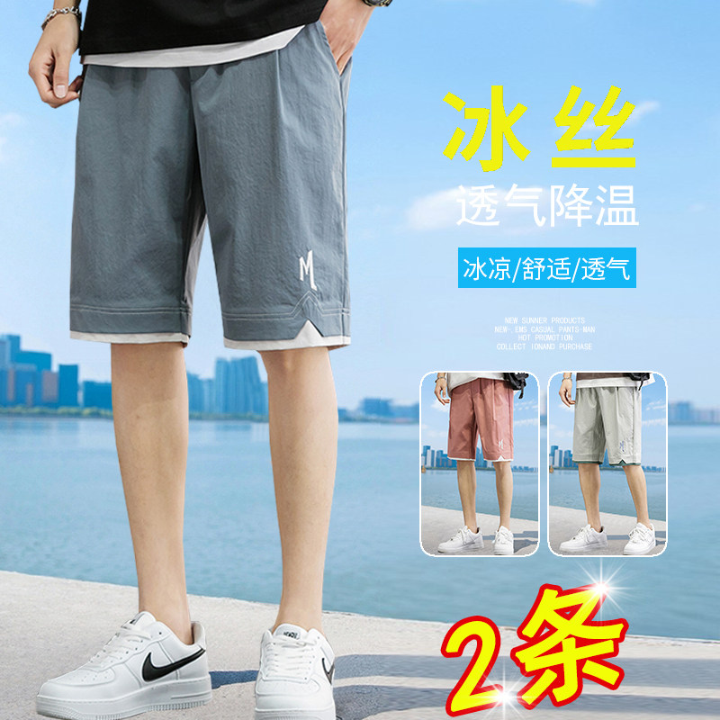 Шелковые летние трендовые шорты, тонкие спортивные пляжные штаны для отдыха, коллекция 2021, в корейском стиле, оверсайз, свободный прямой крой