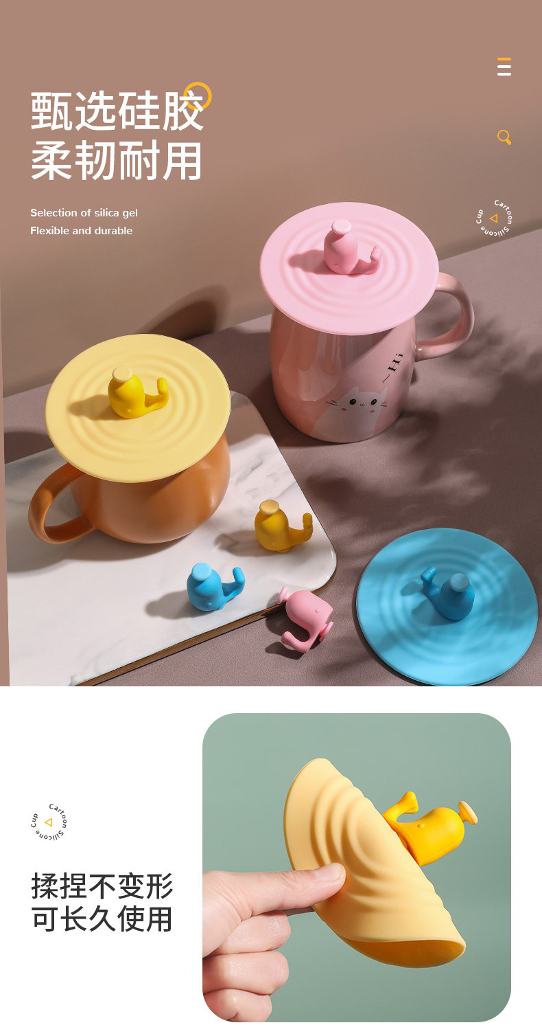Универсальная креативная силиконовая мультяшная керамическая стеклянная крышка для стакана