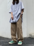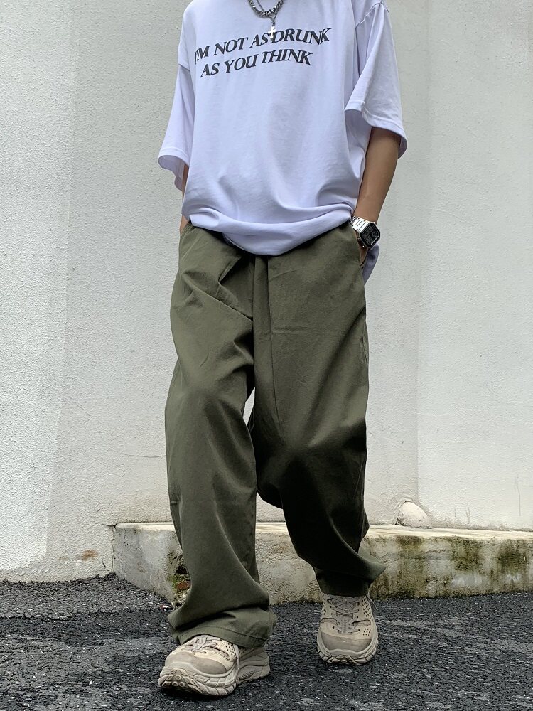 Японские штаны на липучке подходит для мужчин и женщин в стиле хип-хоп, оверсайз, свободный прямой крой