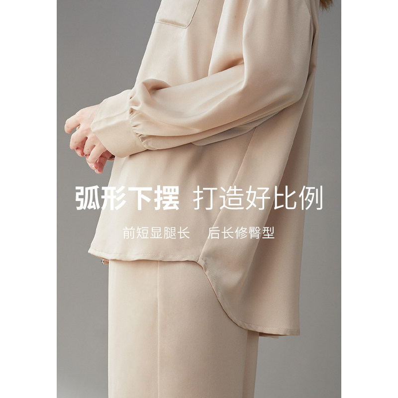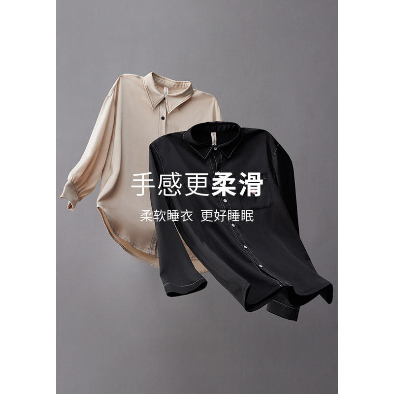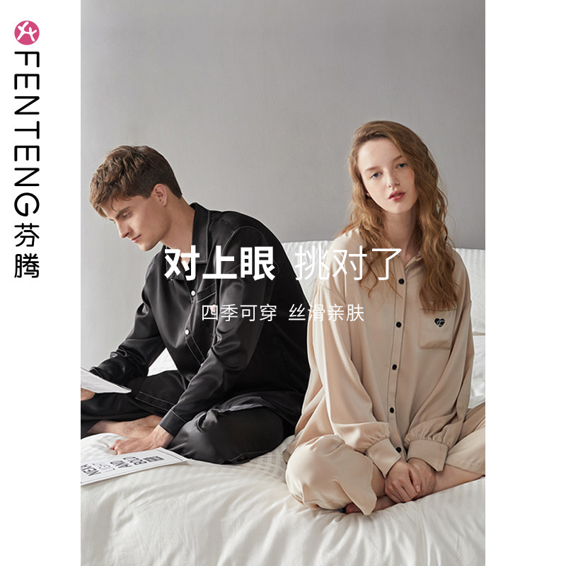 芬腾 Лонгслив, штаны, осенняя шелковая пижама, тонкий комплект, свободный крой
