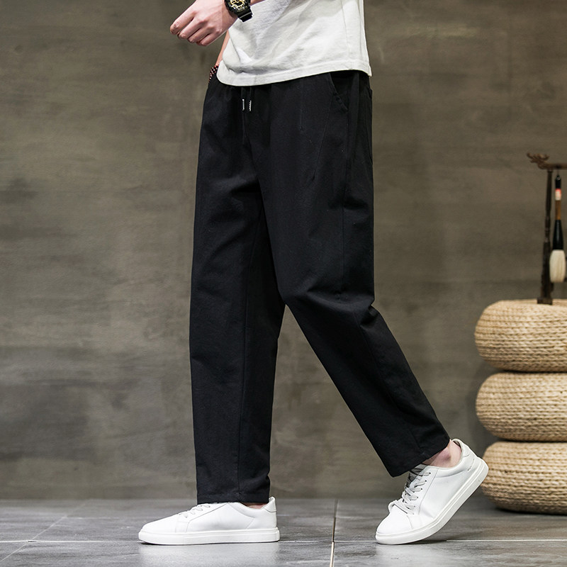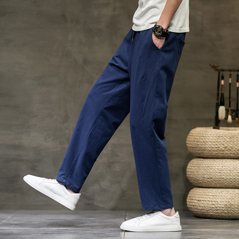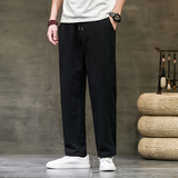 Летние тонкие ретро трендовые штаны, из хлопка и льна, оверсайз, свободный прямой крой, китайский стиль
