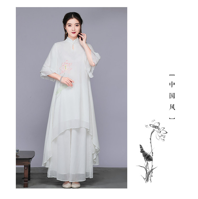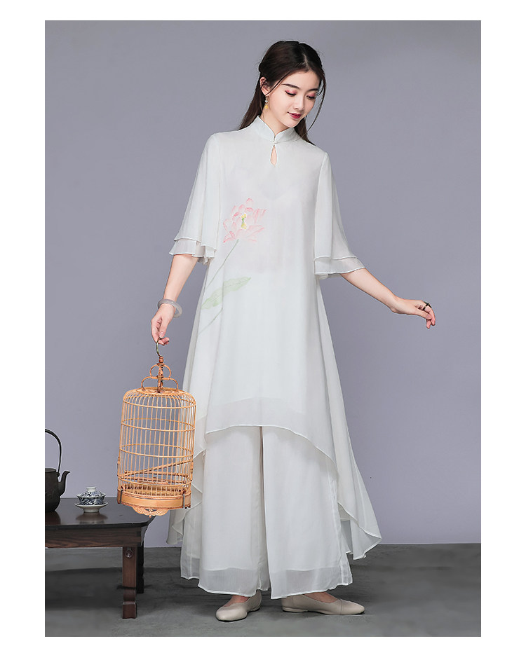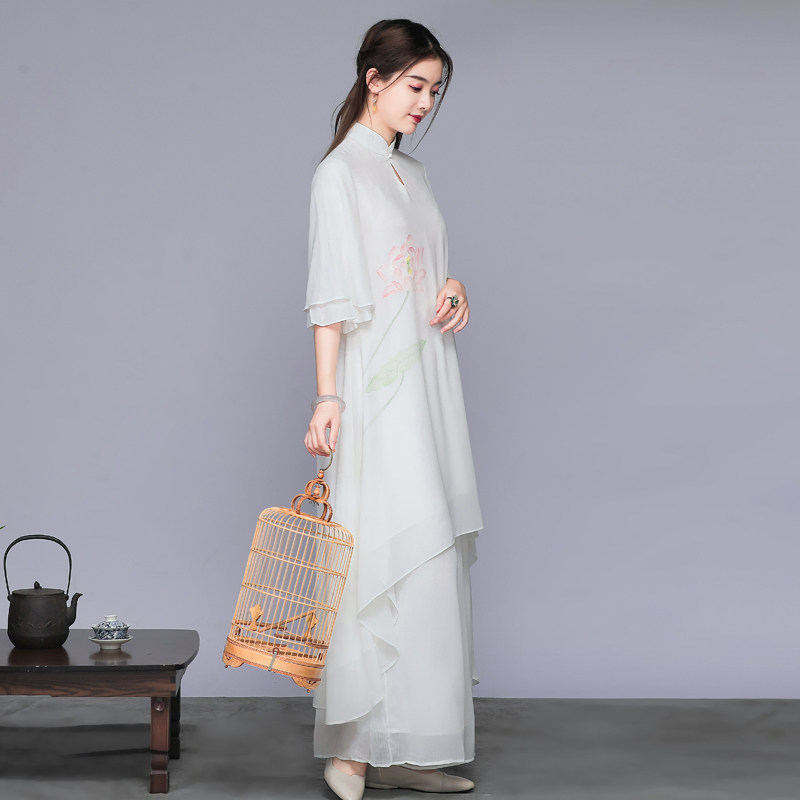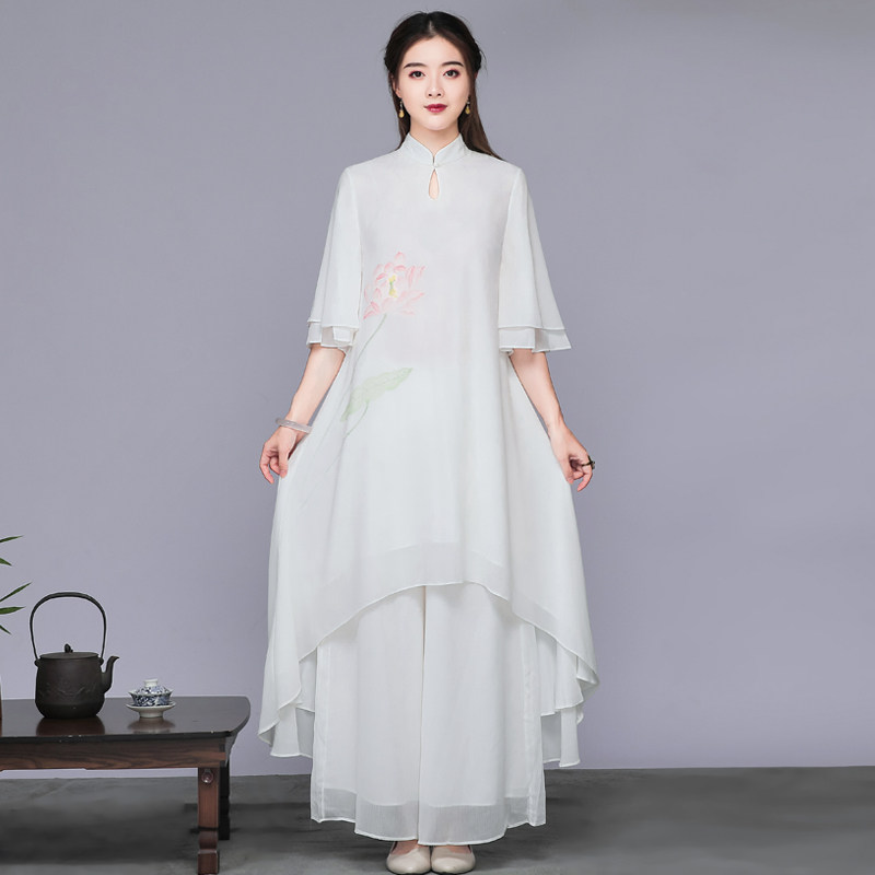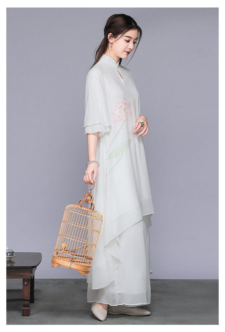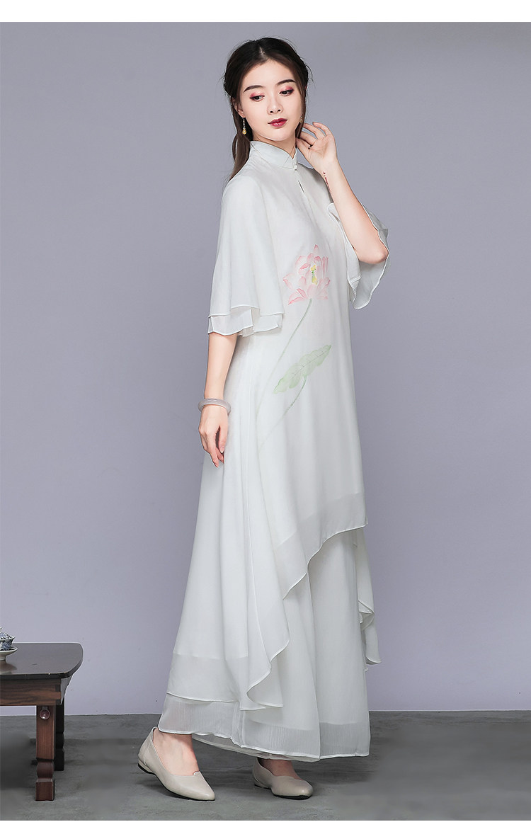 Комплект, ретро шифоновое платье, китайский стиль