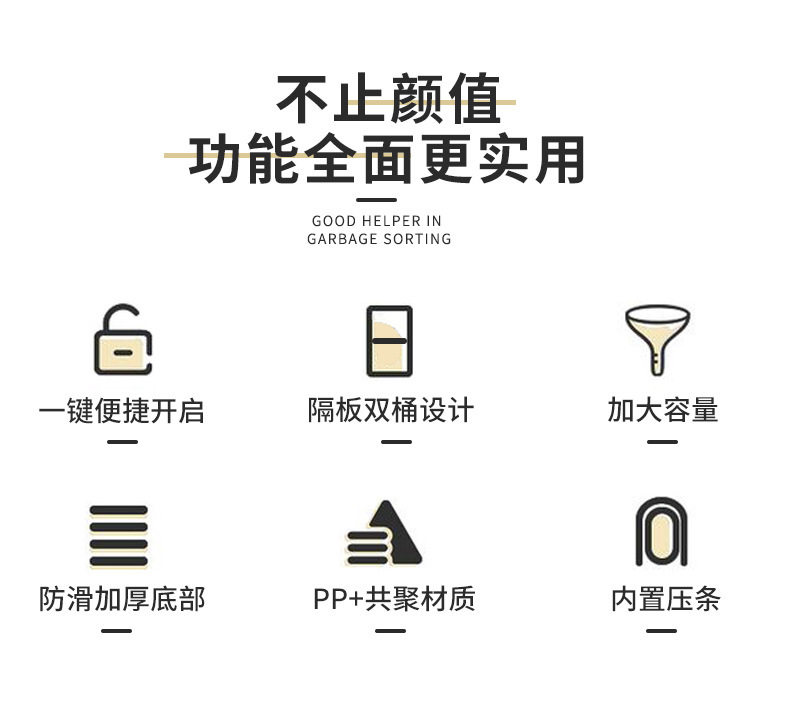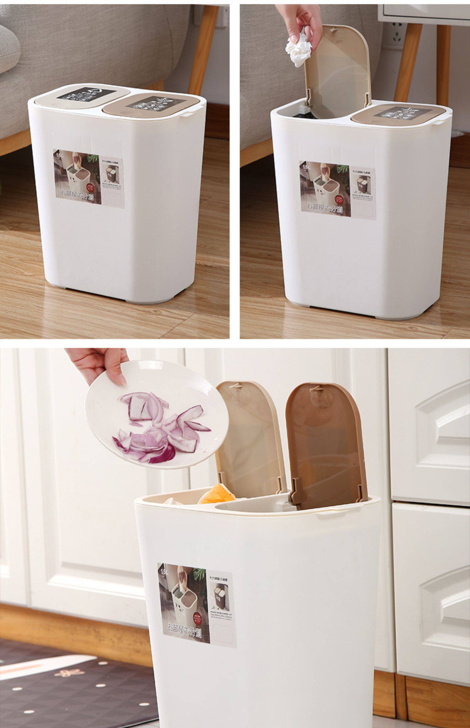 Большое мусорное ведро для домашнего использования с разделителями