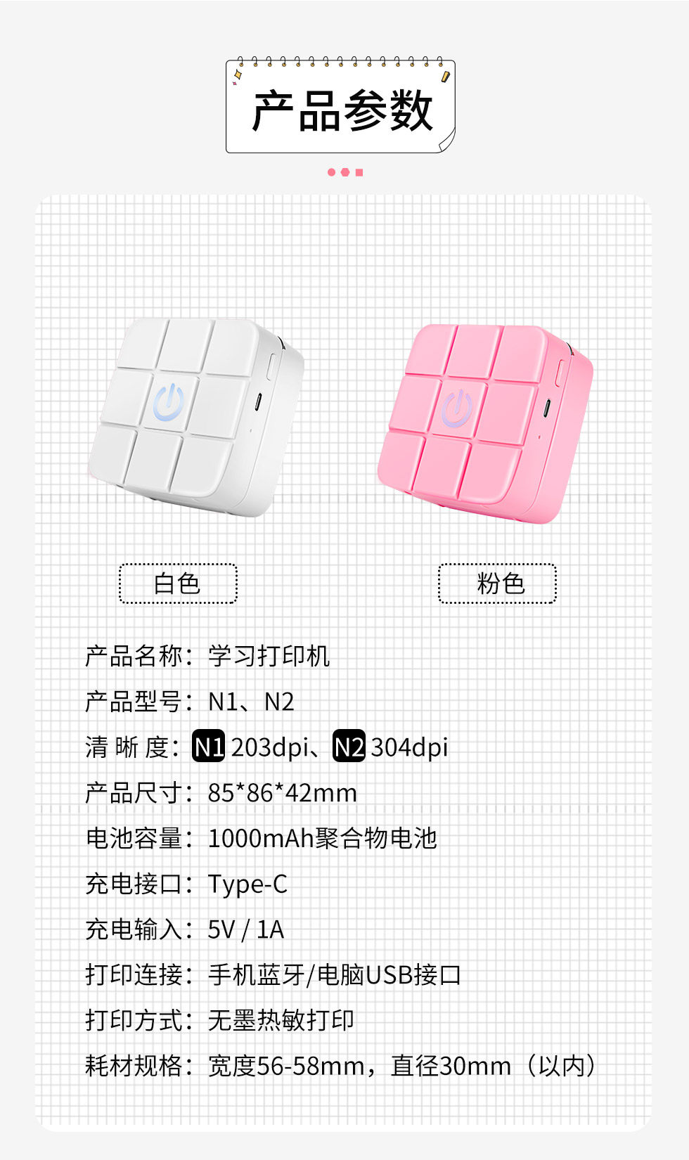 纽曼 Карманный портативный маленький принтер для школьников, bluetooth