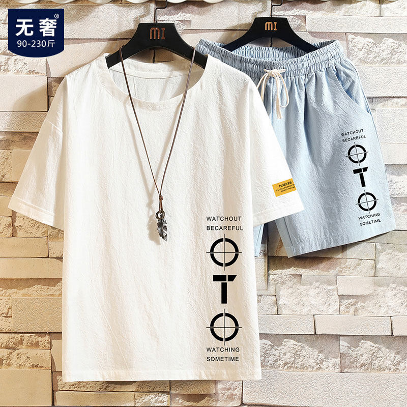 Мужская футболка, летний тонкий комплект, большой размер