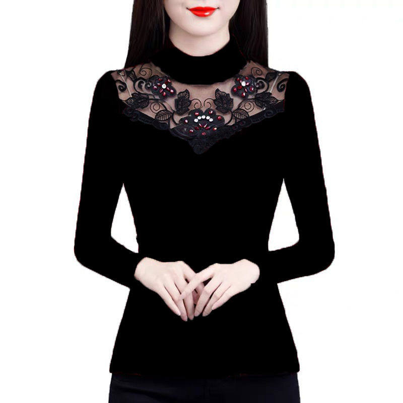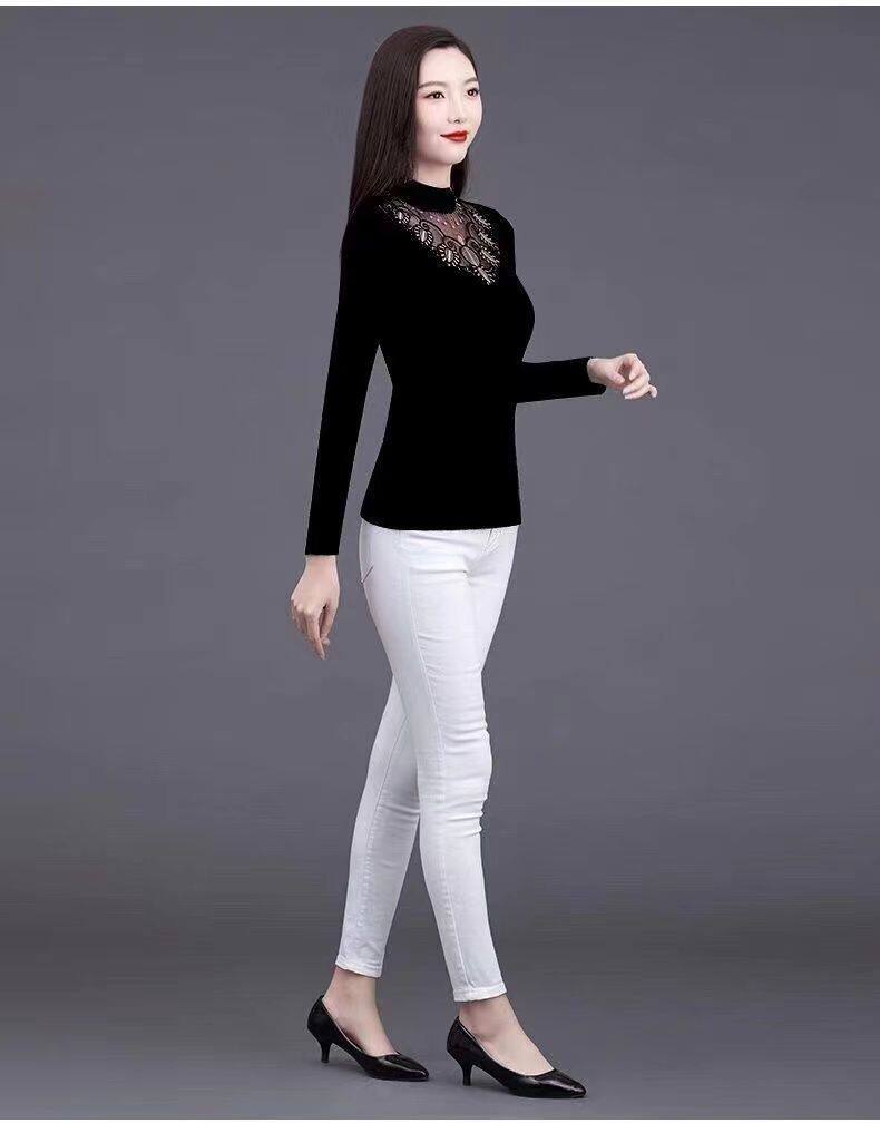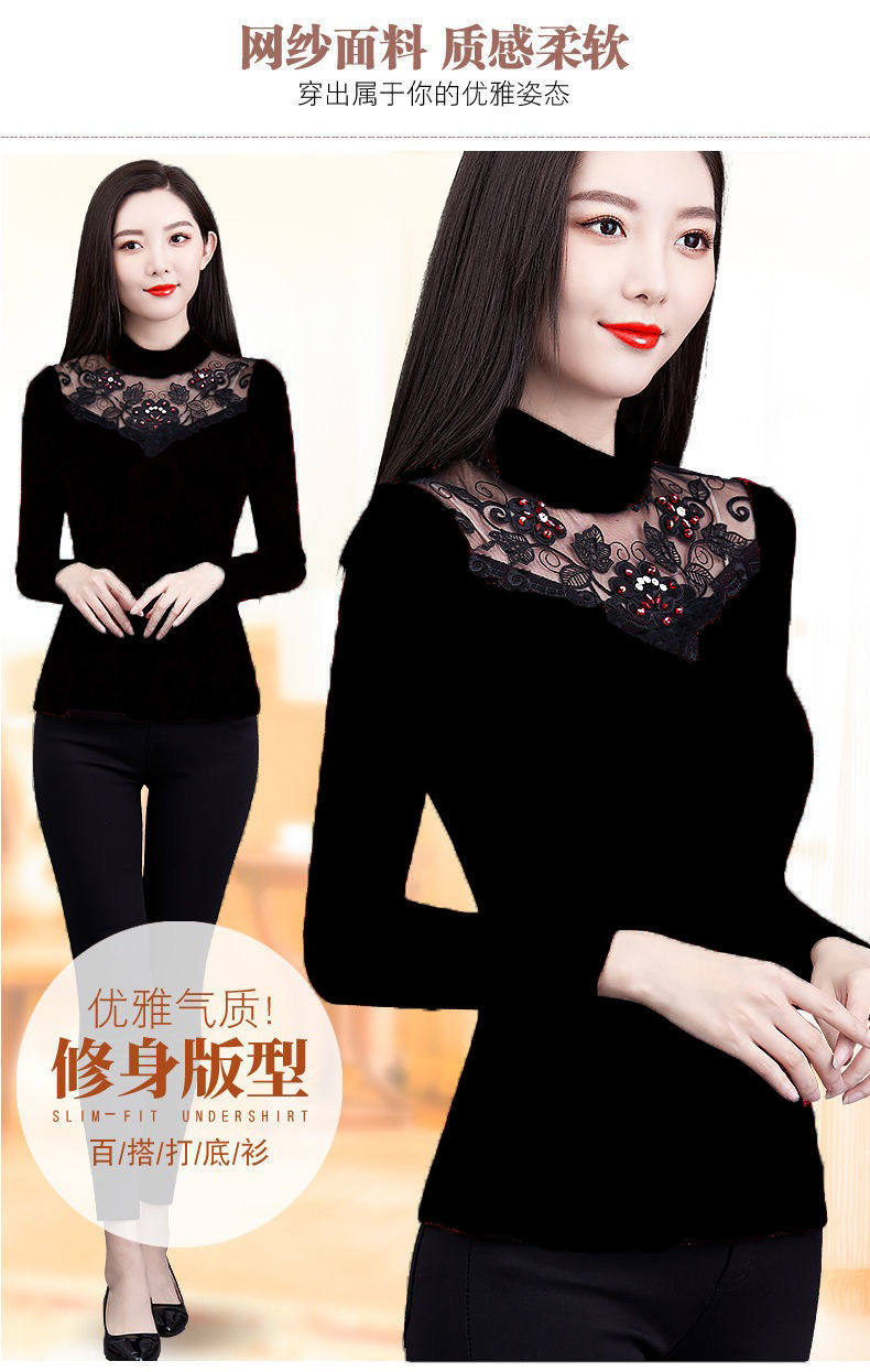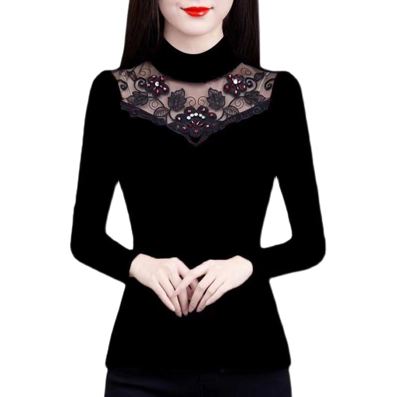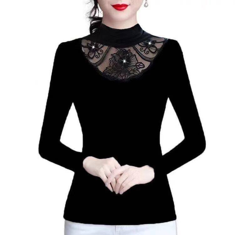 Флисовый демисезонный удерживающий тепло кружевной базовый приятный телу эластичный лонгслив, высокий воротник, большой размер