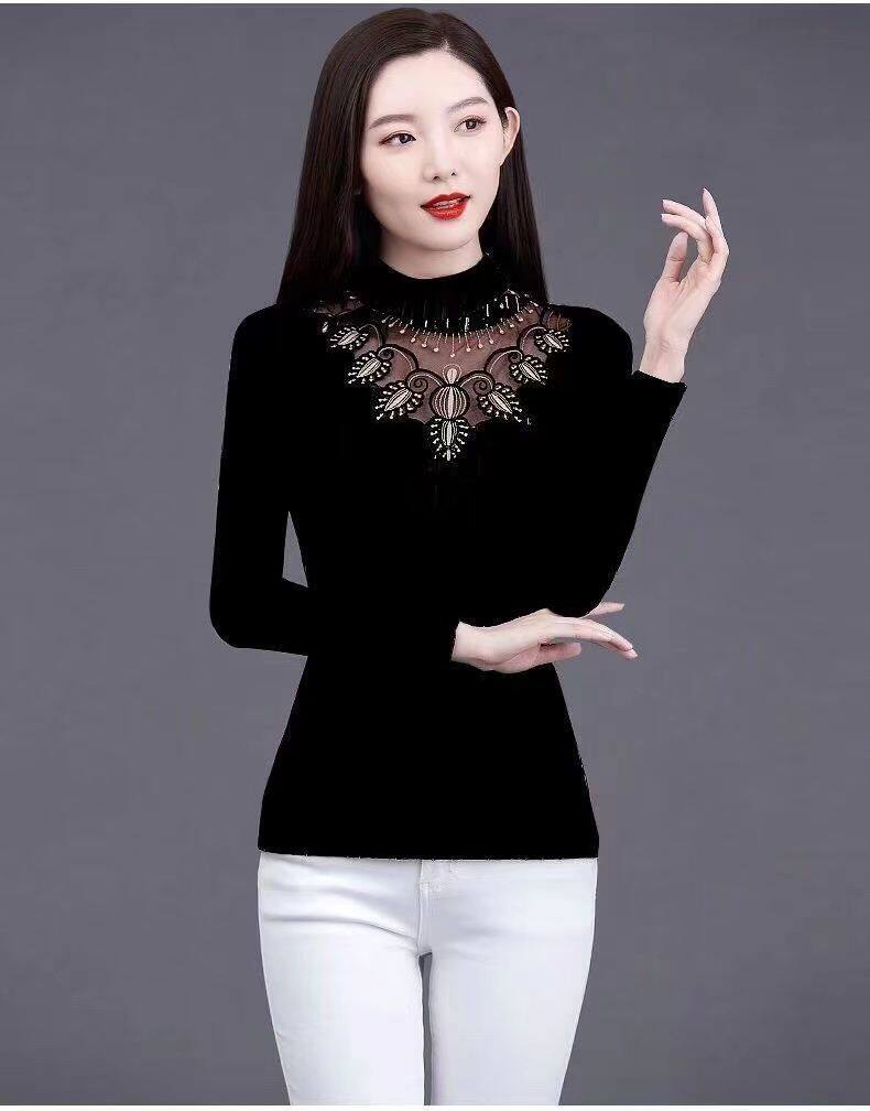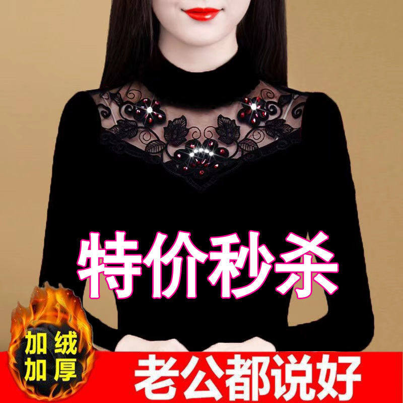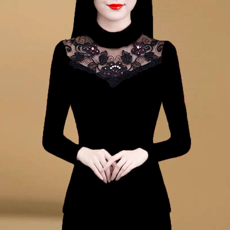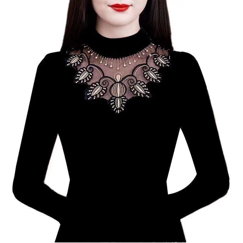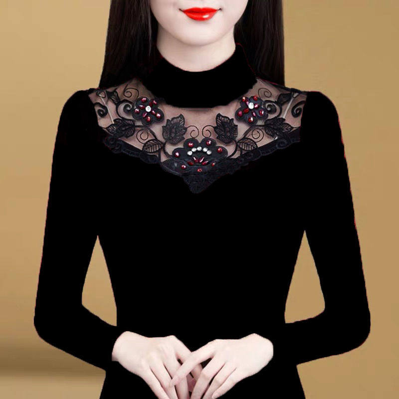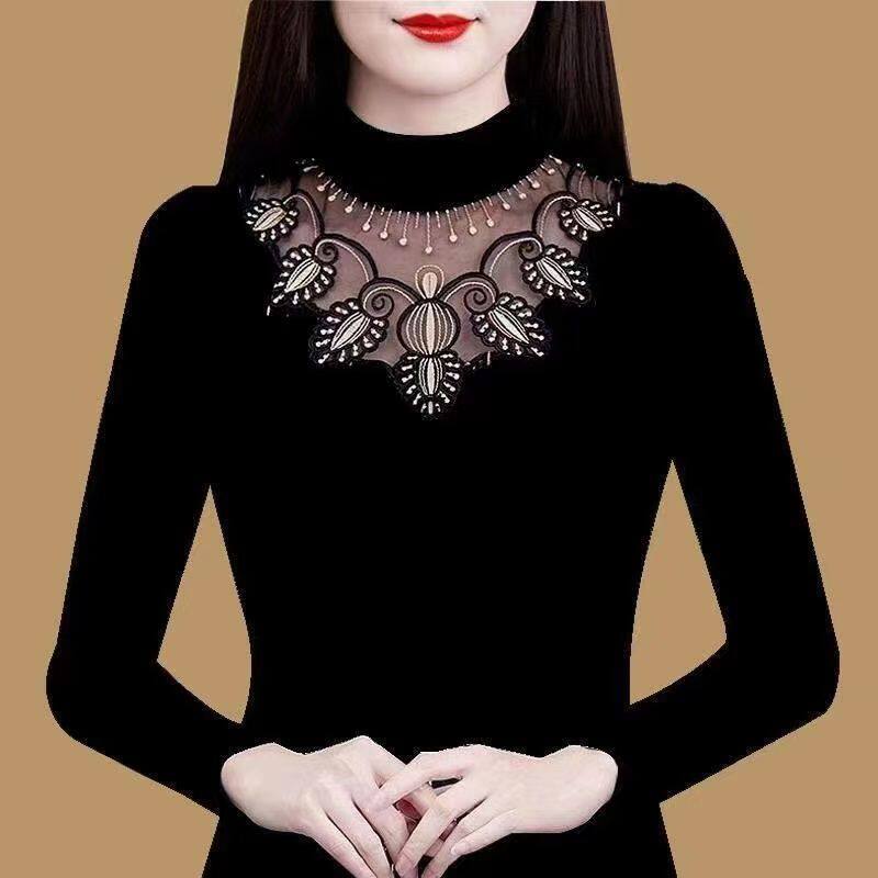 Флисовый демисезонный удерживающий тепло кружевной базовый приятный телу эластичный лонгслив, высокий воротник, большой размер