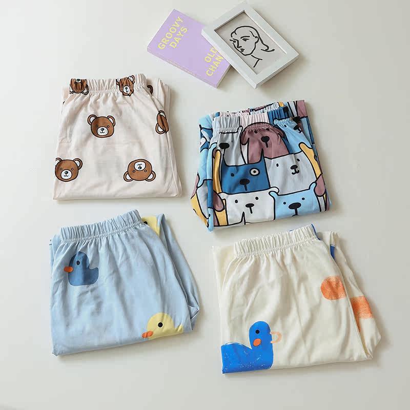 Хлопковая трикотажная весенняя летняя пижама, тонкий лонгслив, штаны, хлопковый комплект, оверсайз