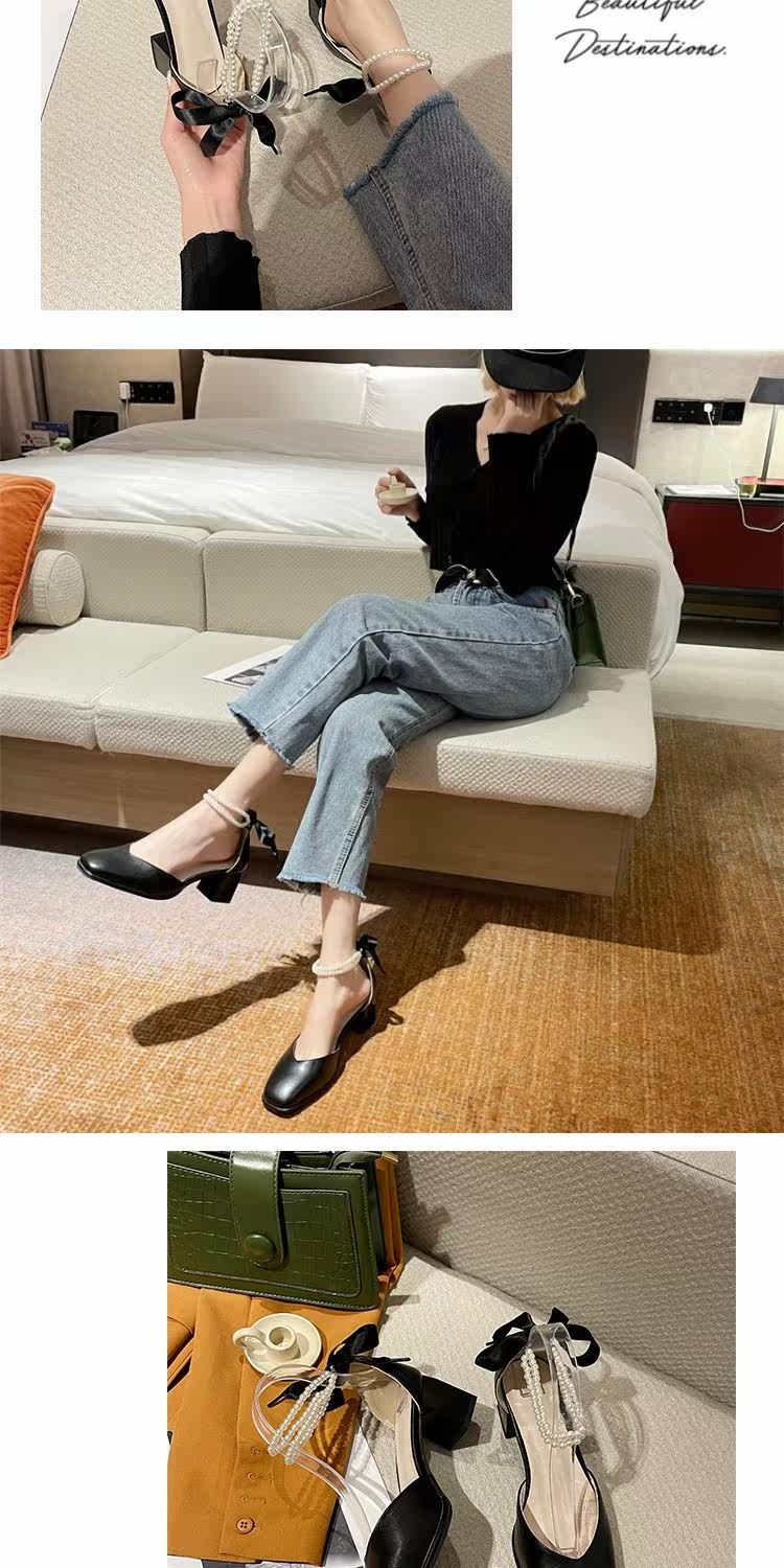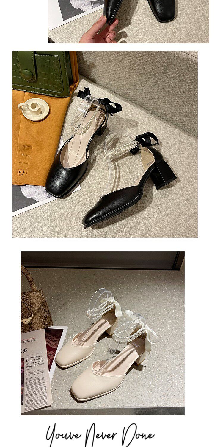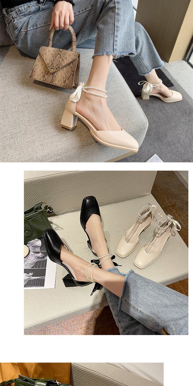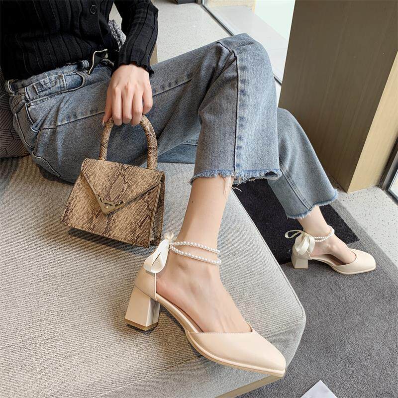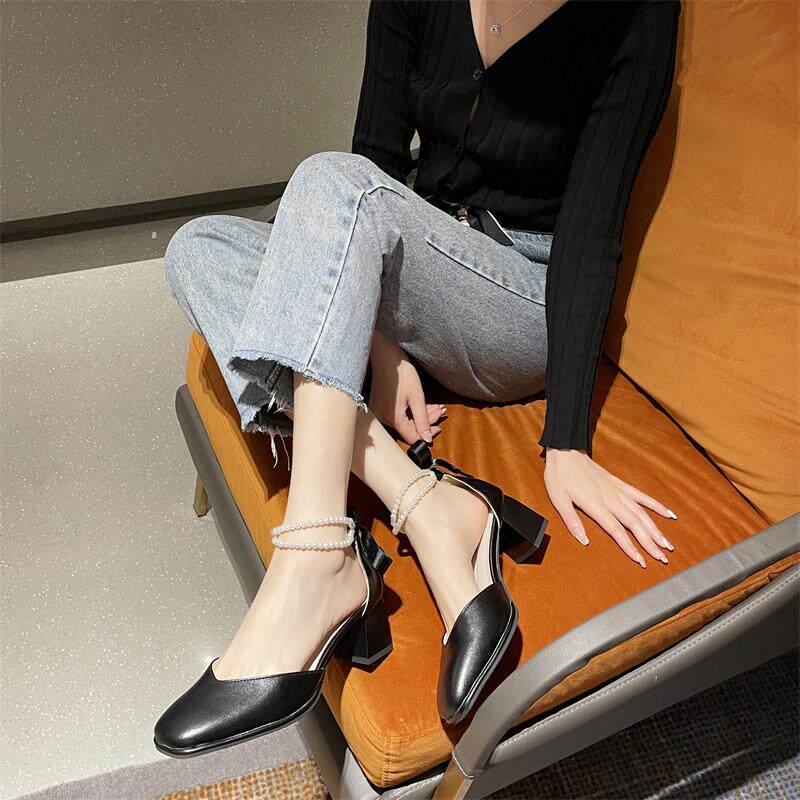 Летний ремень из жемчуга на высоком каблуке, сандалии, обувь, коллекция 2023, в корейском стиле, французский стиль