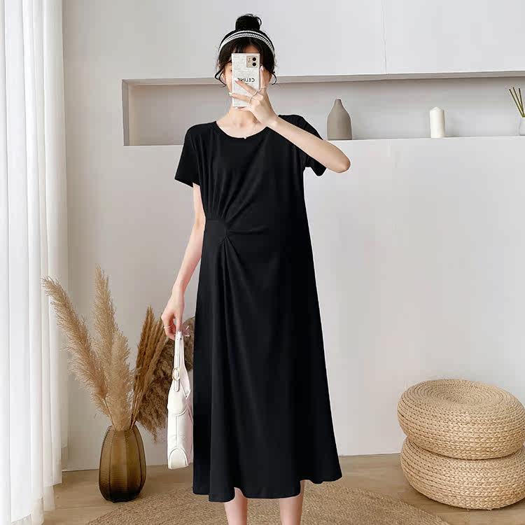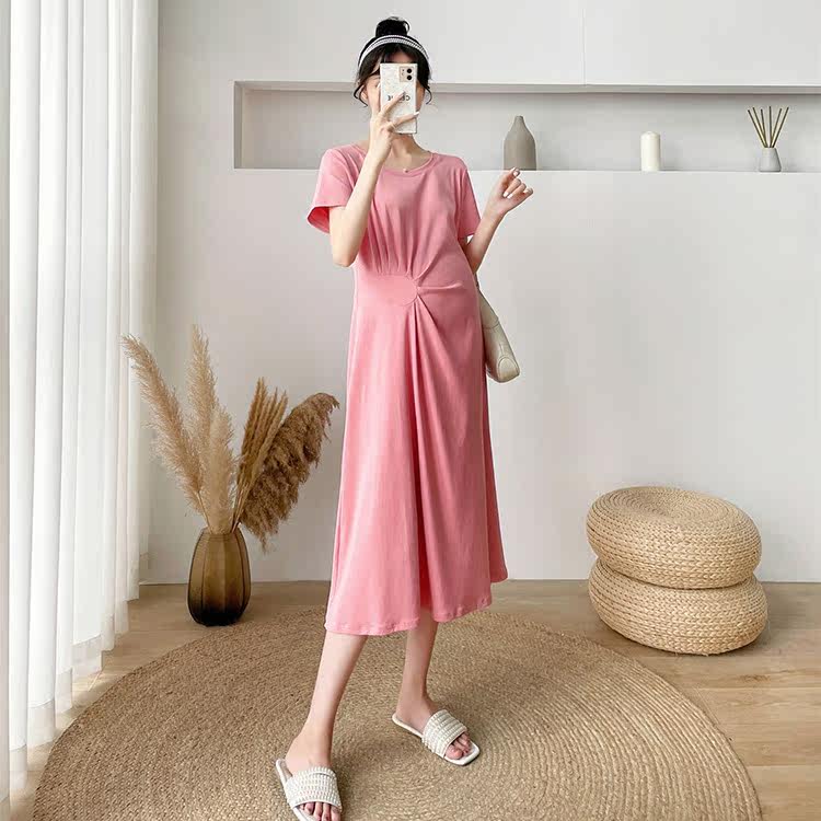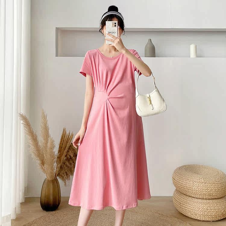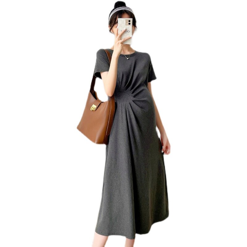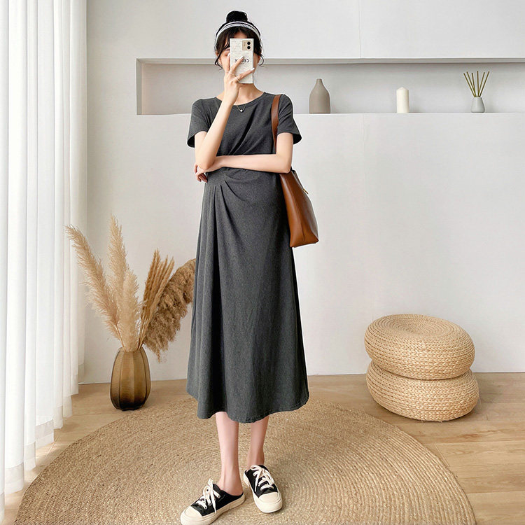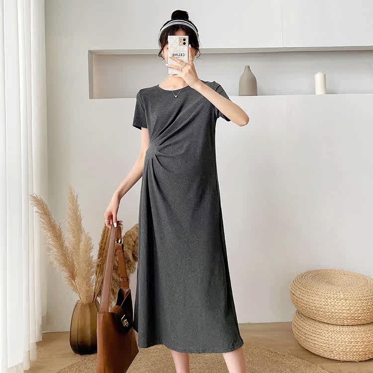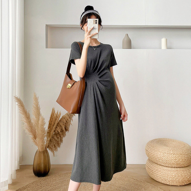 Летняя летняя одежда для беременных, модная футболка, длинное летнее платье-футболка, платье, длина миди