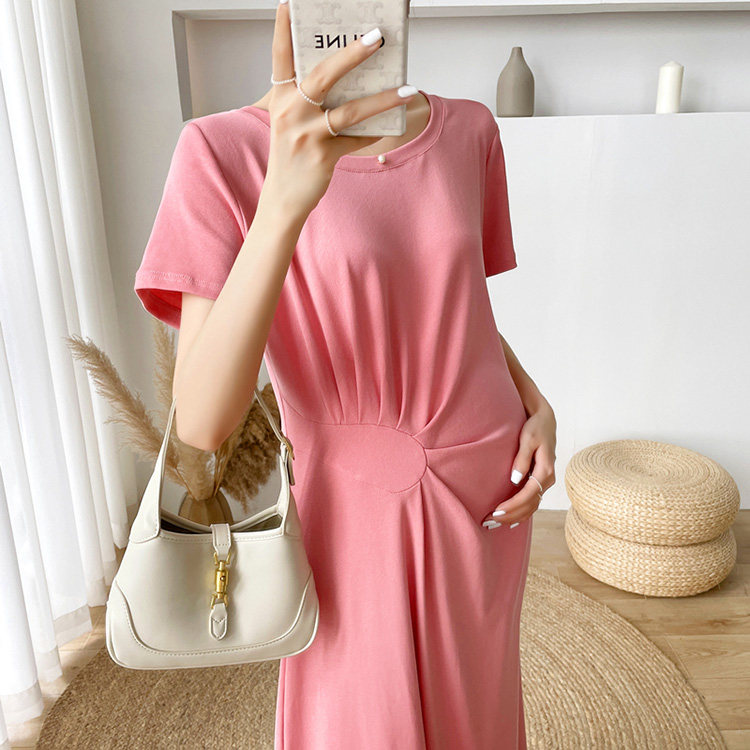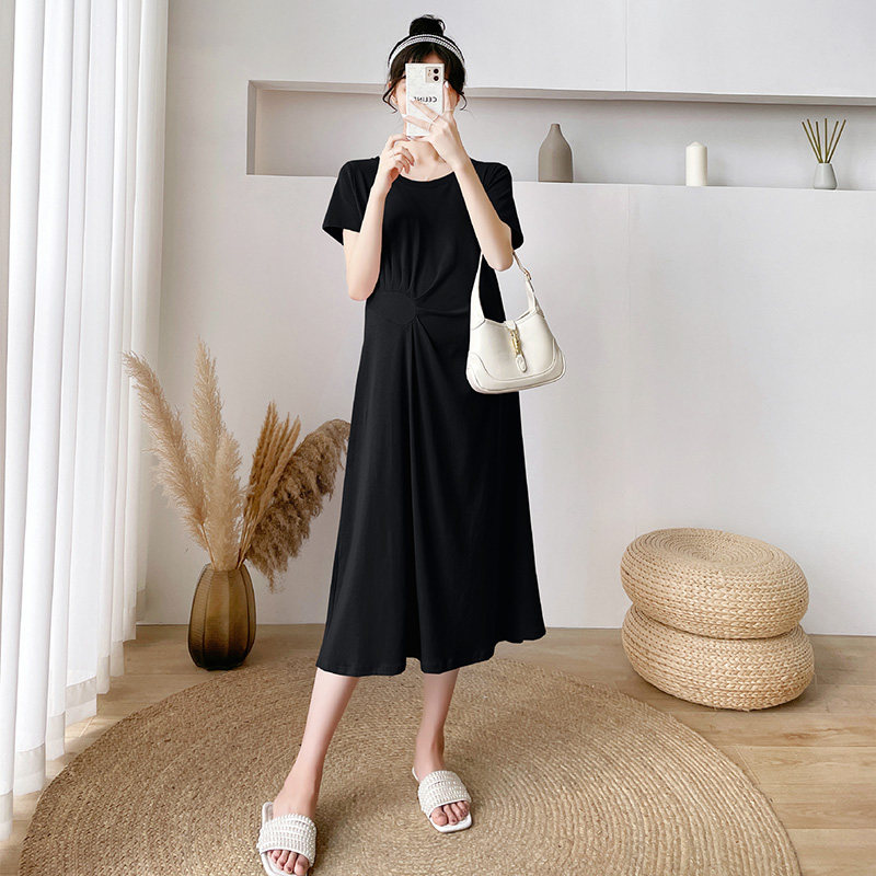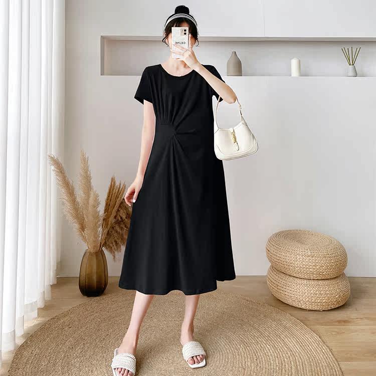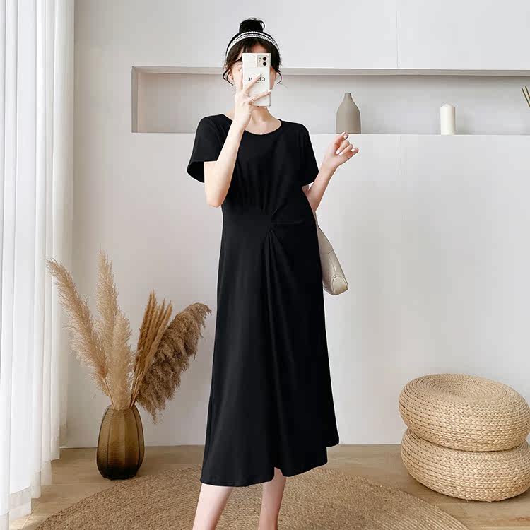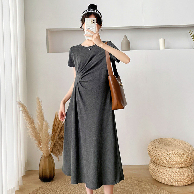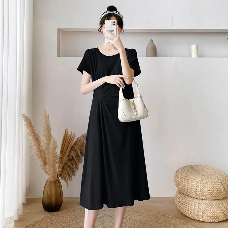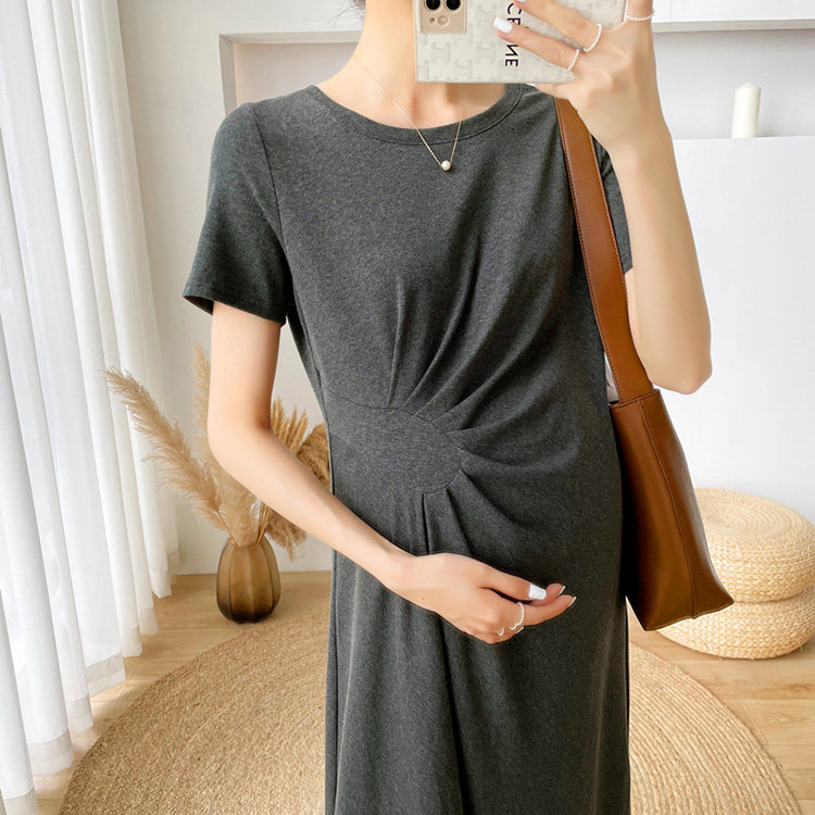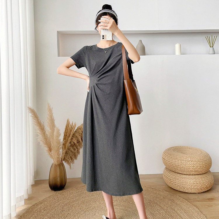 Летняя летняя одежда для беременных, модная футболка, длинное летнее платье-футболка, платье, длина миди