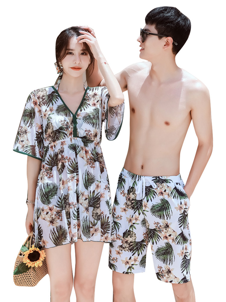 Раздельный купальник для влюбленных, униформа, поддерживающий комплект, мужские пляжные штаны, 3 предмета, по фигуре, большой размер