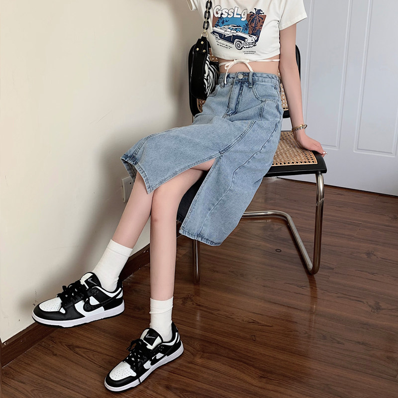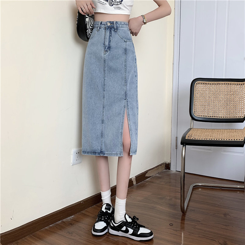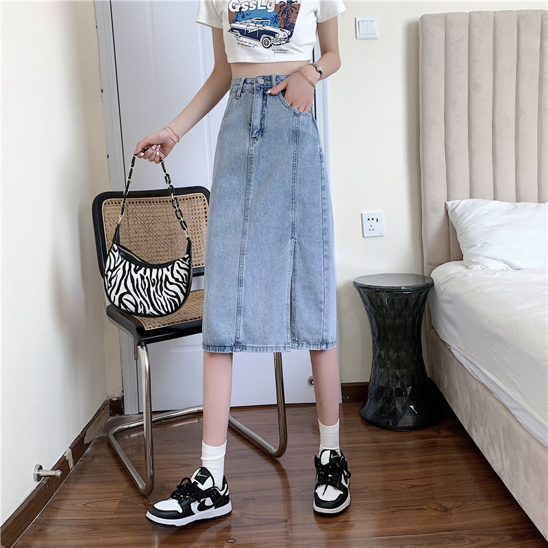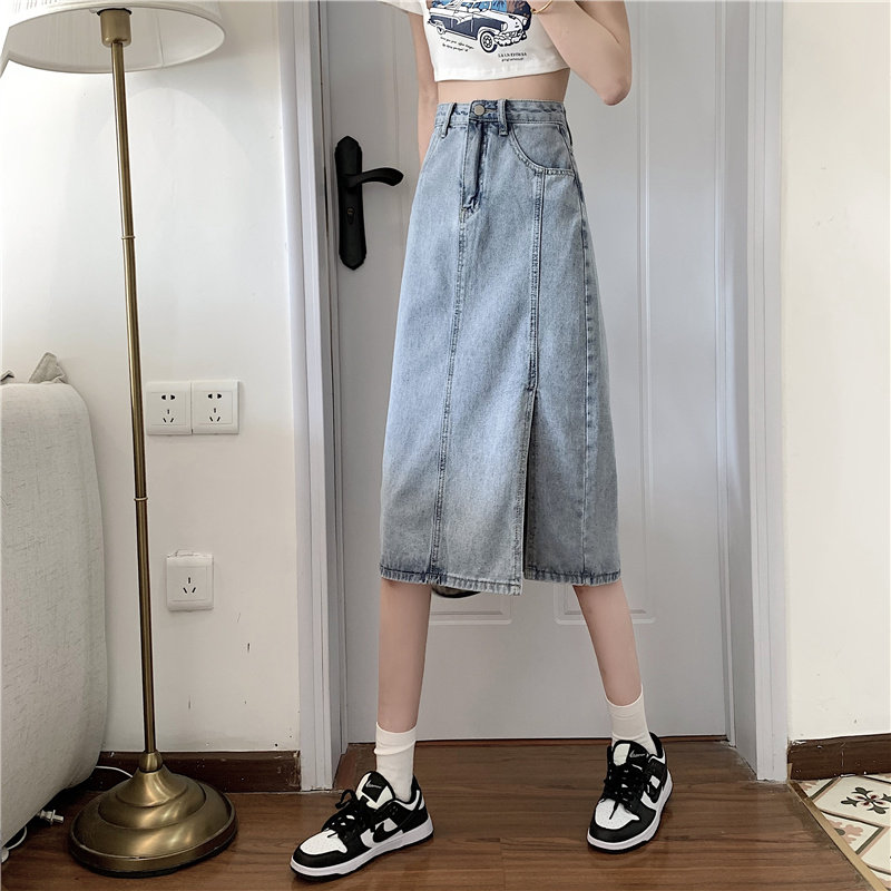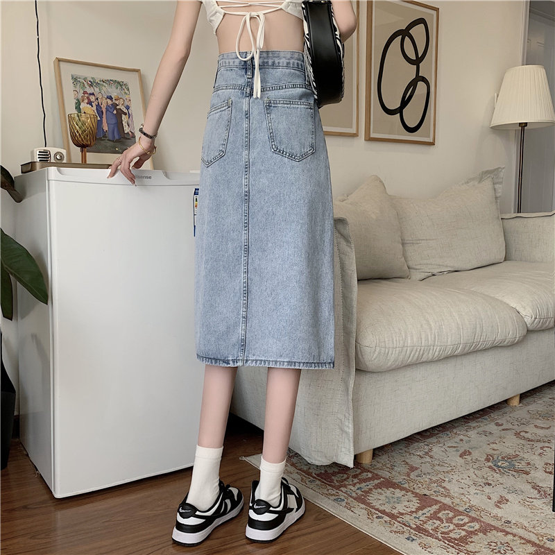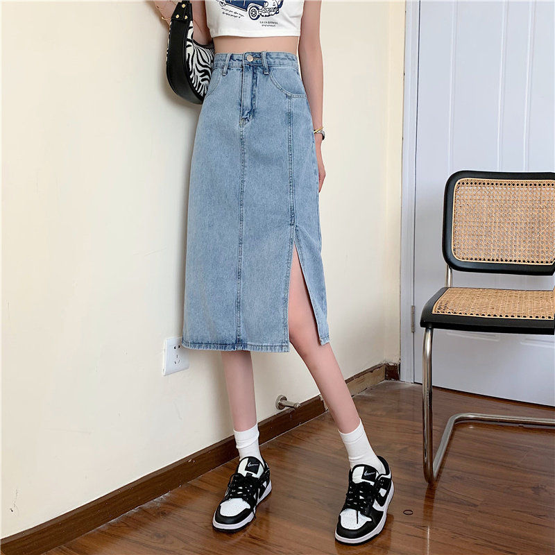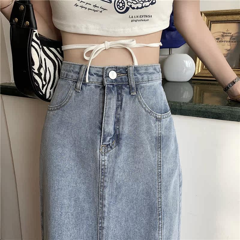Длинная летняя джинсовая юбка, высокая талия, средней длины, большой размер, А-силуэт, с акцентом на бедрах