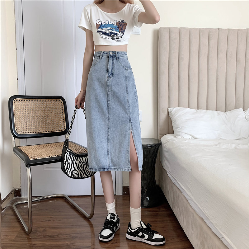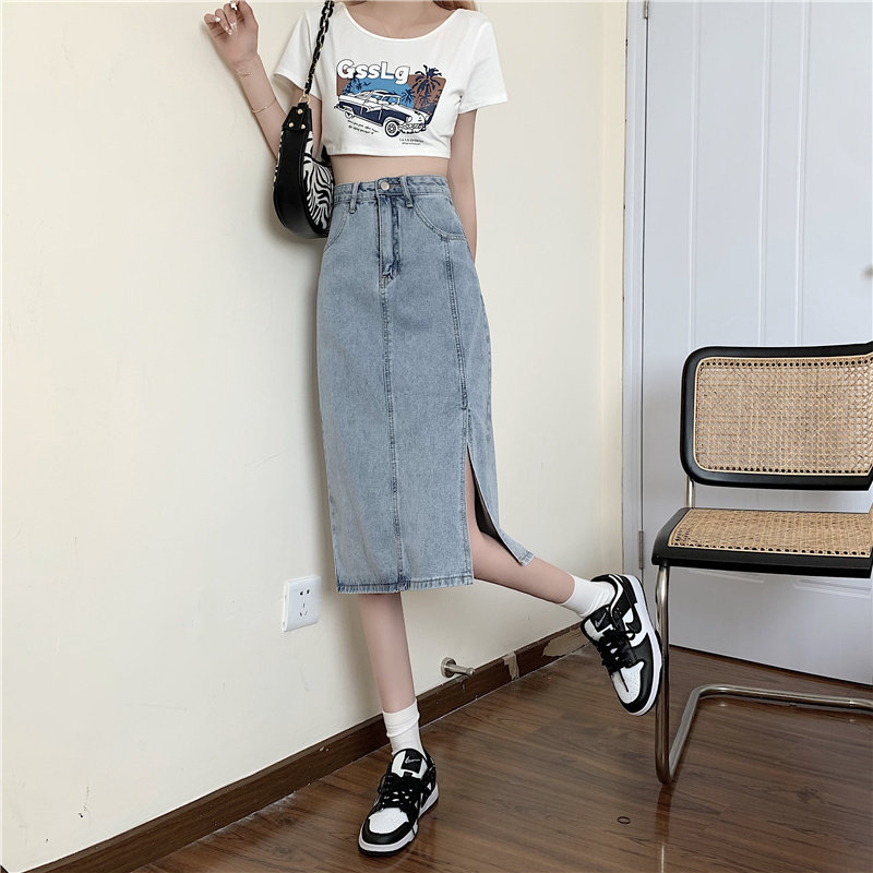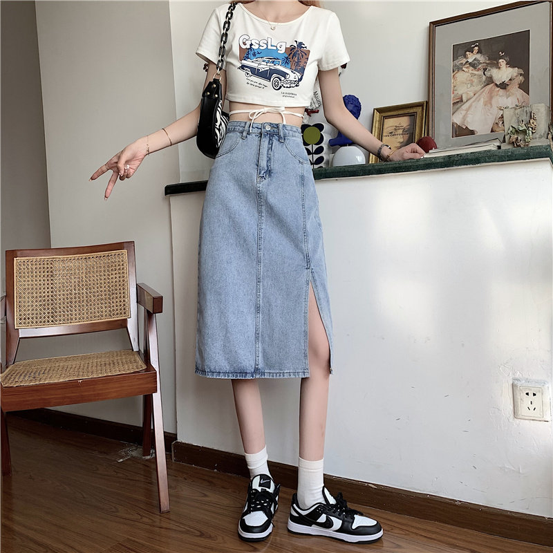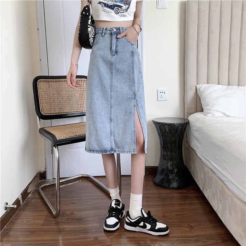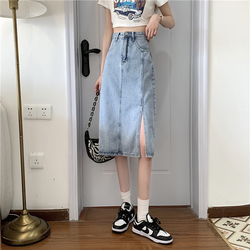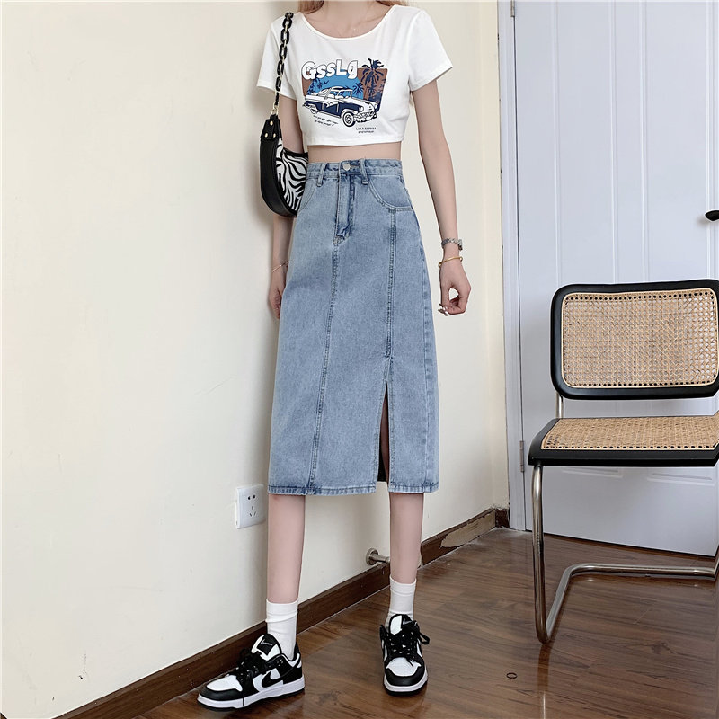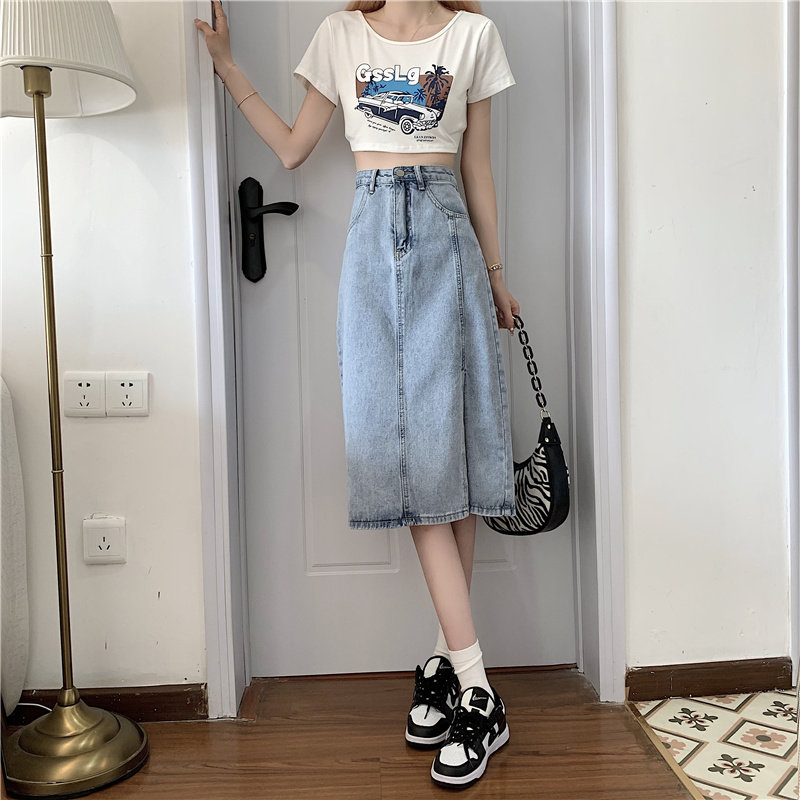 Длинная летняя джинсовая юбка, высокая талия, средней длины, большой размер, А-силуэт, с акцентом на бедрах