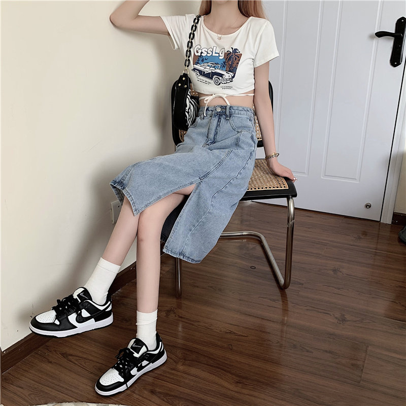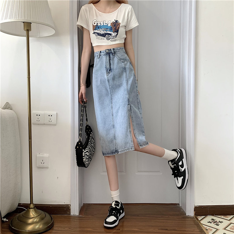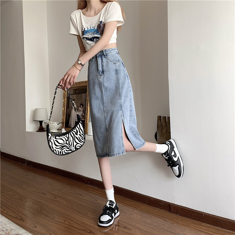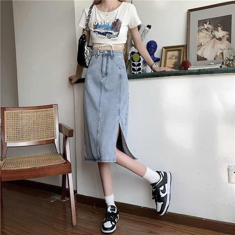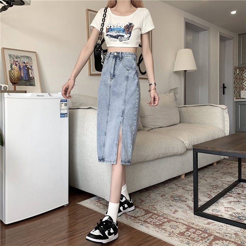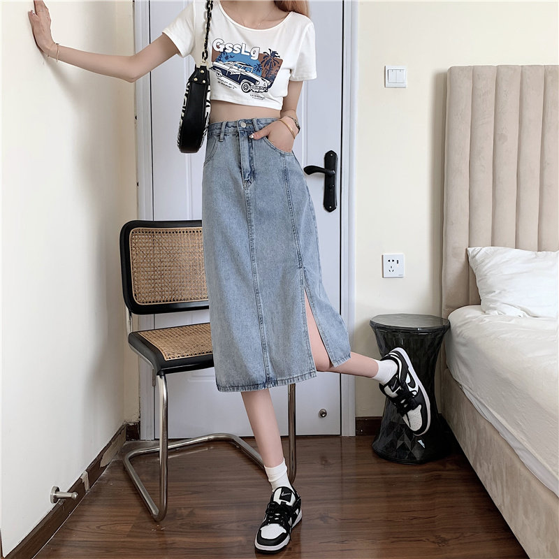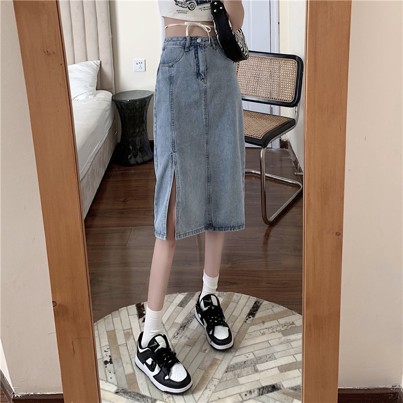 Длинная летняя джинсовая юбка, высокая талия, средней длины, большой размер, А-силуэт, с акцентом на бедрах