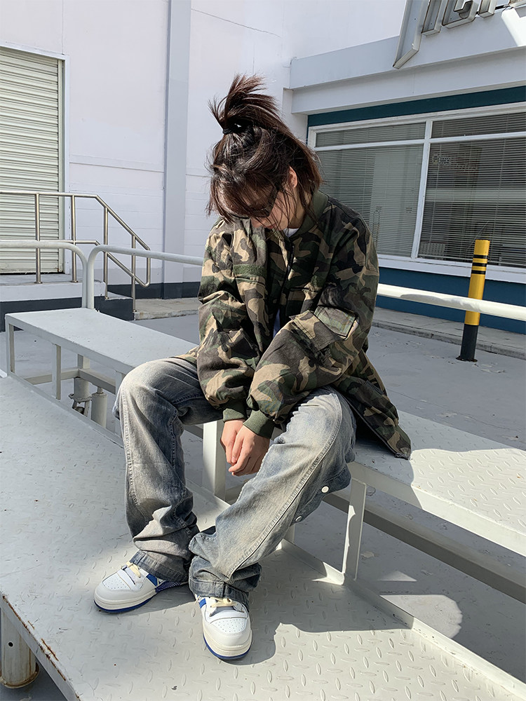 Tide, камуфляжная бейсбольная форма, куртка подходит для мужчин и женщин, в американском стиле, оверсайз