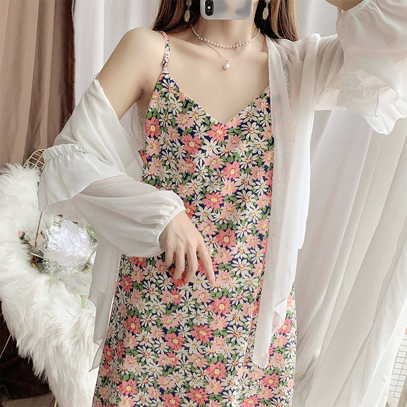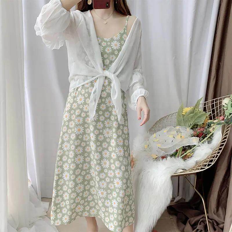 Длинное платье для кормящих грудью, модное летнее платье-комбинация, шифоновая юбка, комплект для выхода на улицу, длина миди, цветочный принт