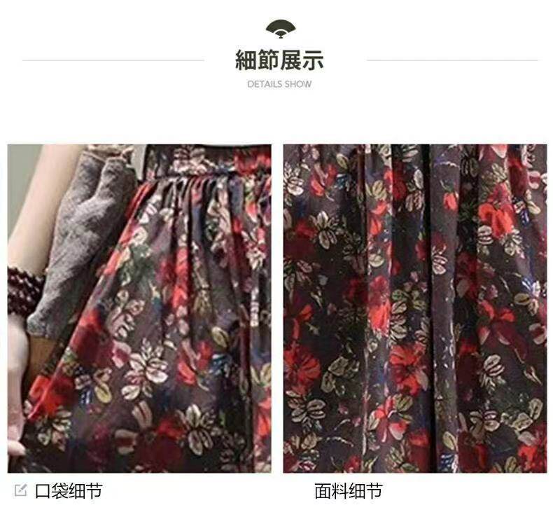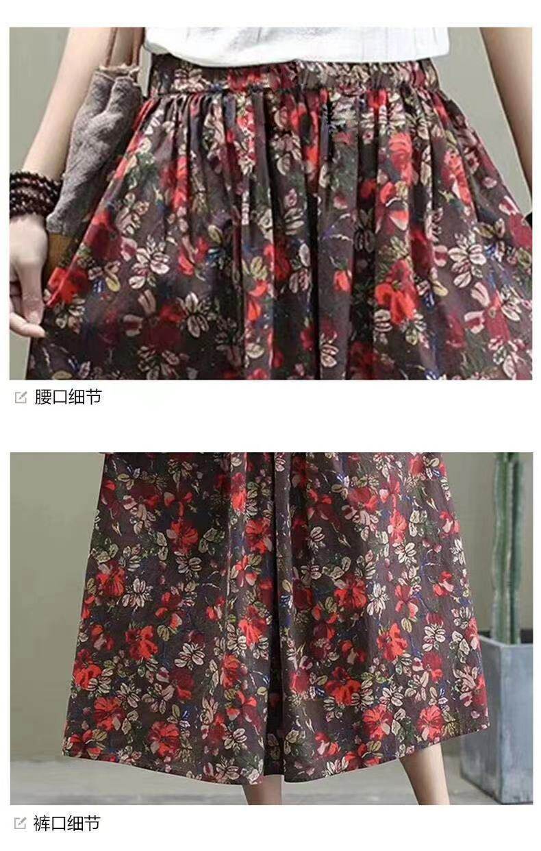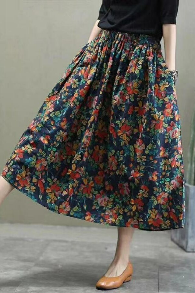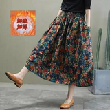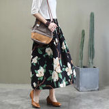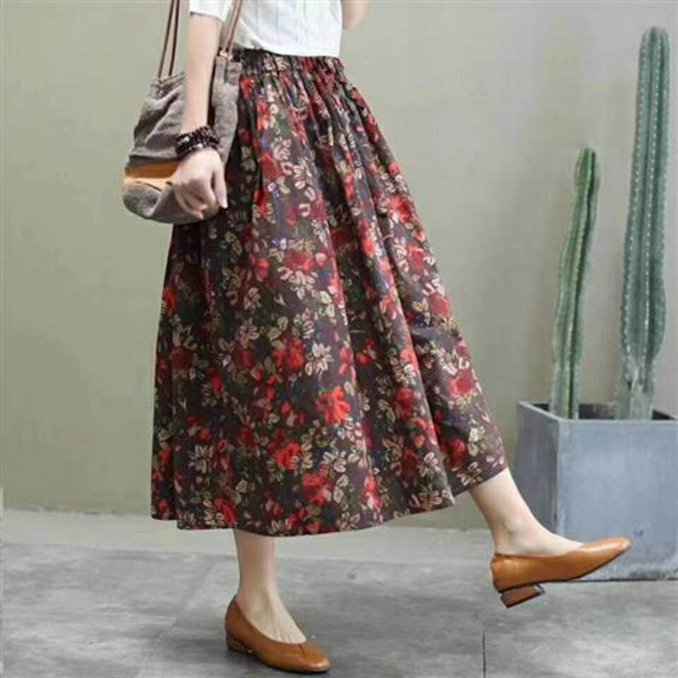 Длинная летняя одежда, приталенная ретро длинная юбка, из хлопка и льна, цветочный принт, коллекция 2021, средней длины, А-силуэт