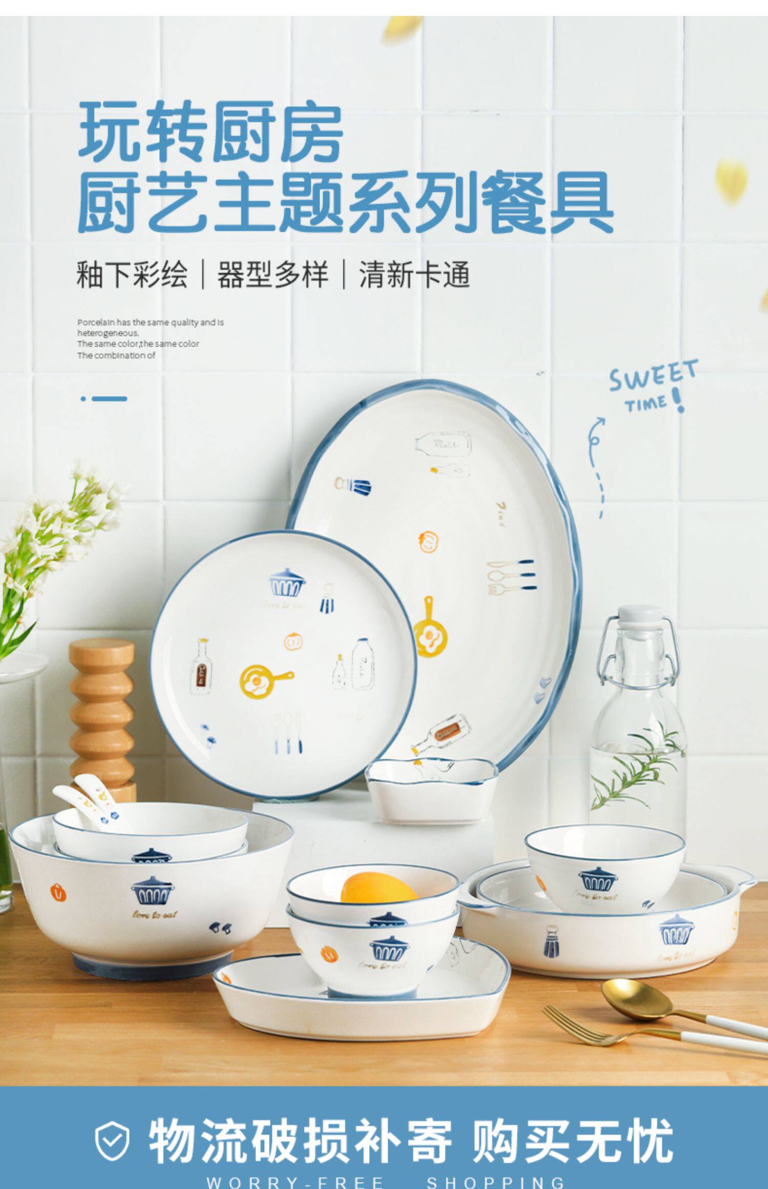 Посуда, креативный комплект, керамическая милая супница для еды