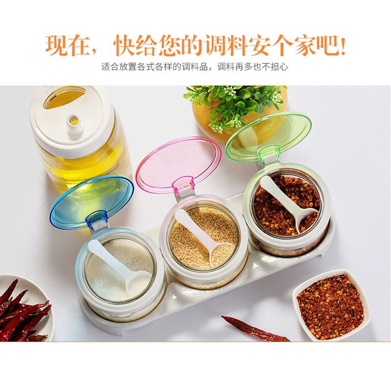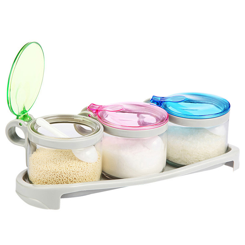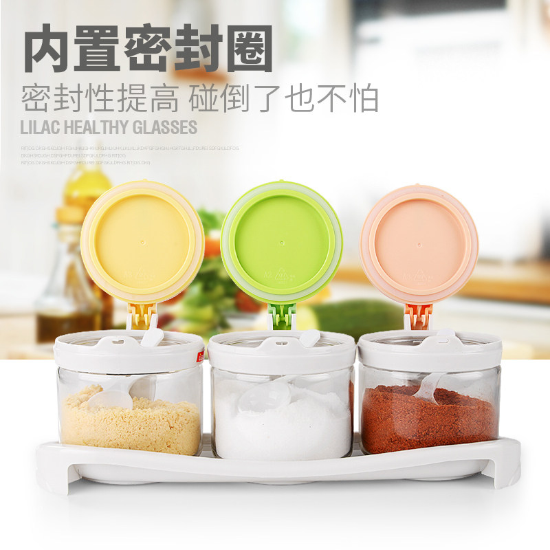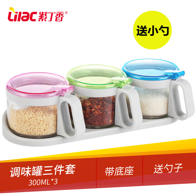 Сиреневая приправовая танк с тремя частями комбинированные приправы с солью соляные приправы прозрачная стеклянная крышка домашняя кухня