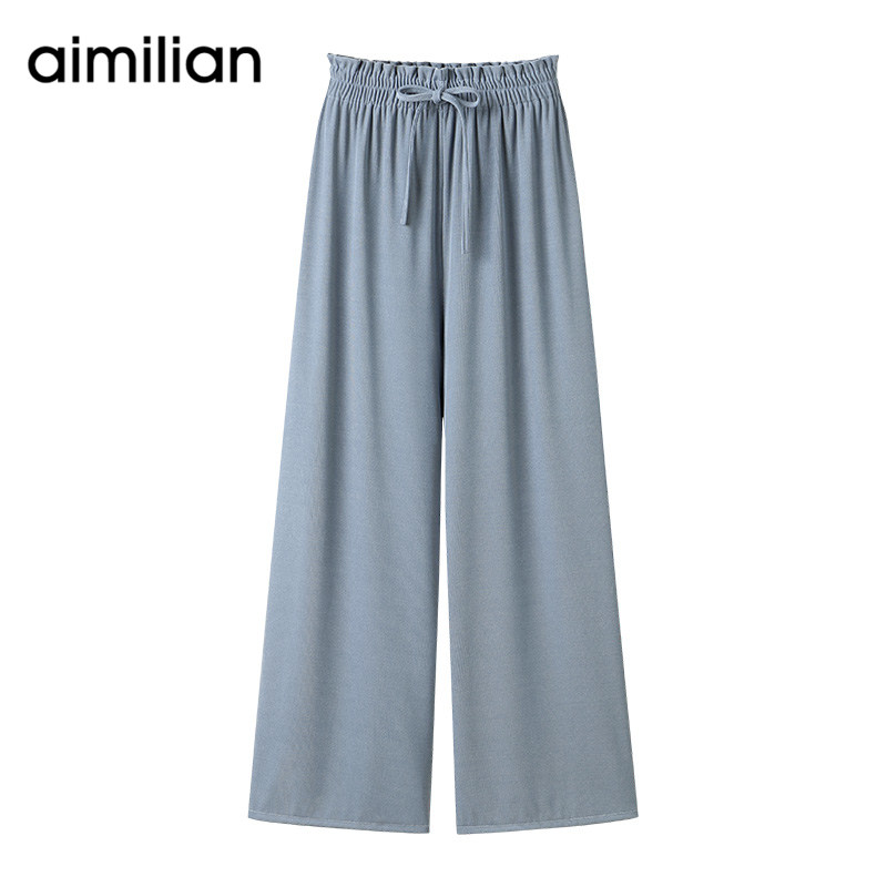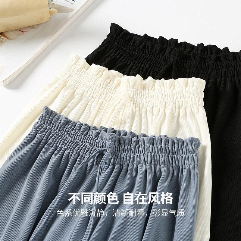 艾米恋 Осенние штаны, леггинсы, приталенные черные повседневные брюки для отдыха, высокая талия, свободный прямой крой, эластичная талия