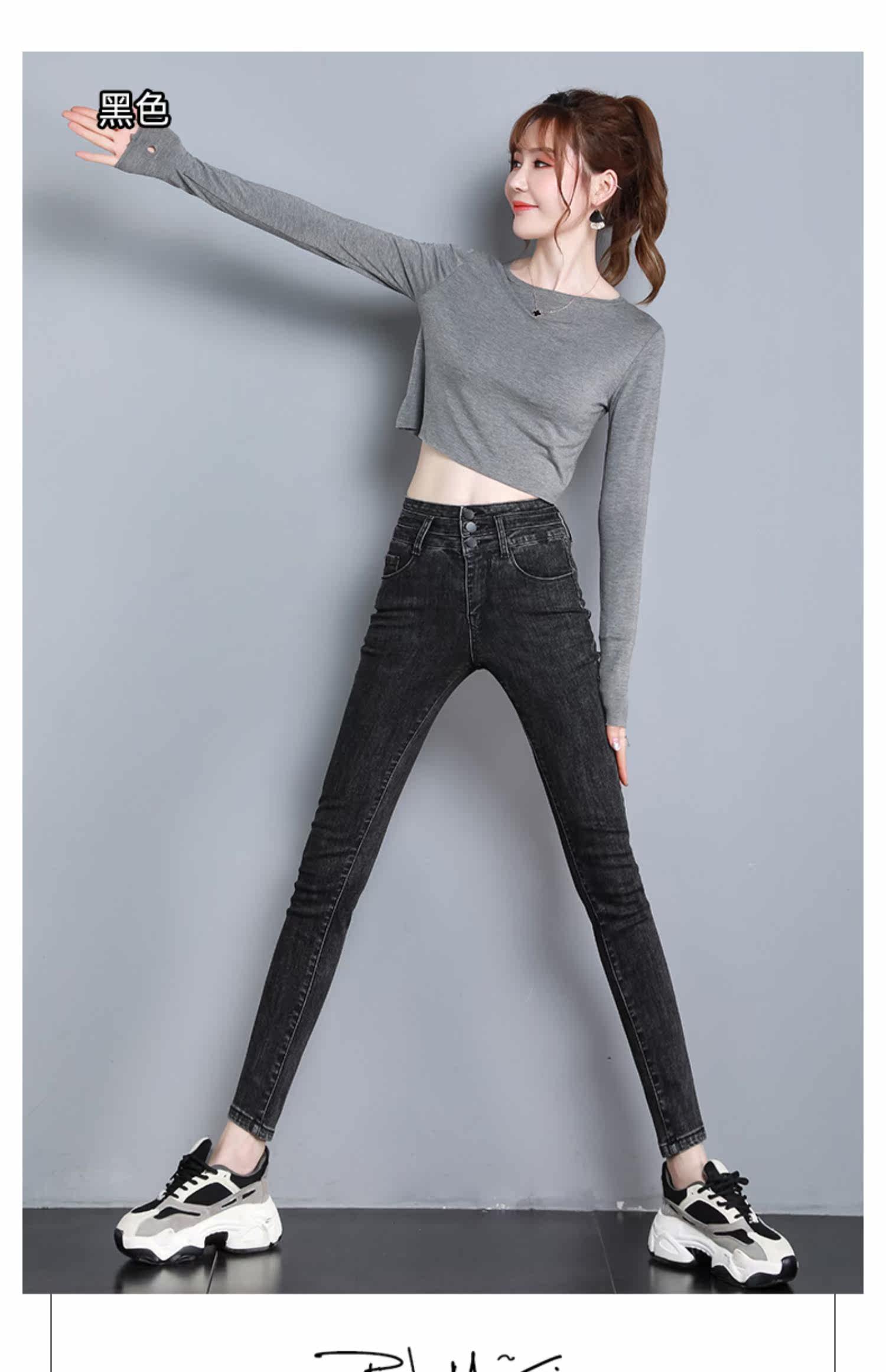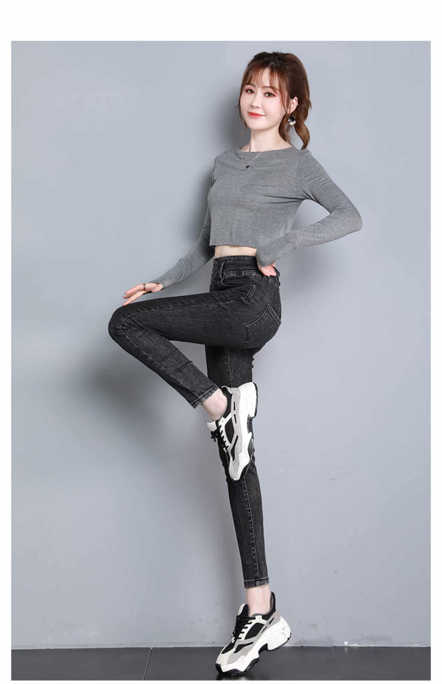 Джинсы, штаны, универсальный длинный карандаш, высокая талия, 2021 года, новая коллекция, в обтяжку