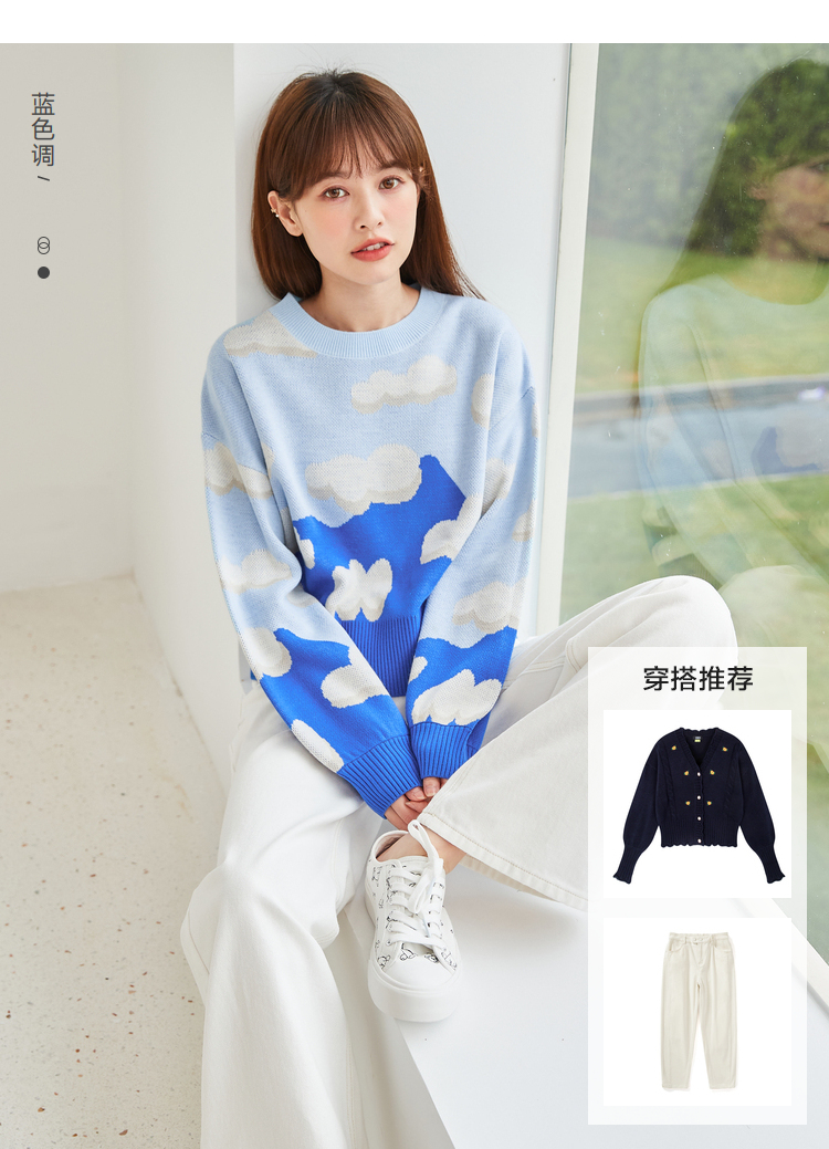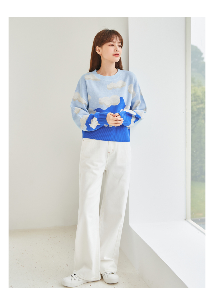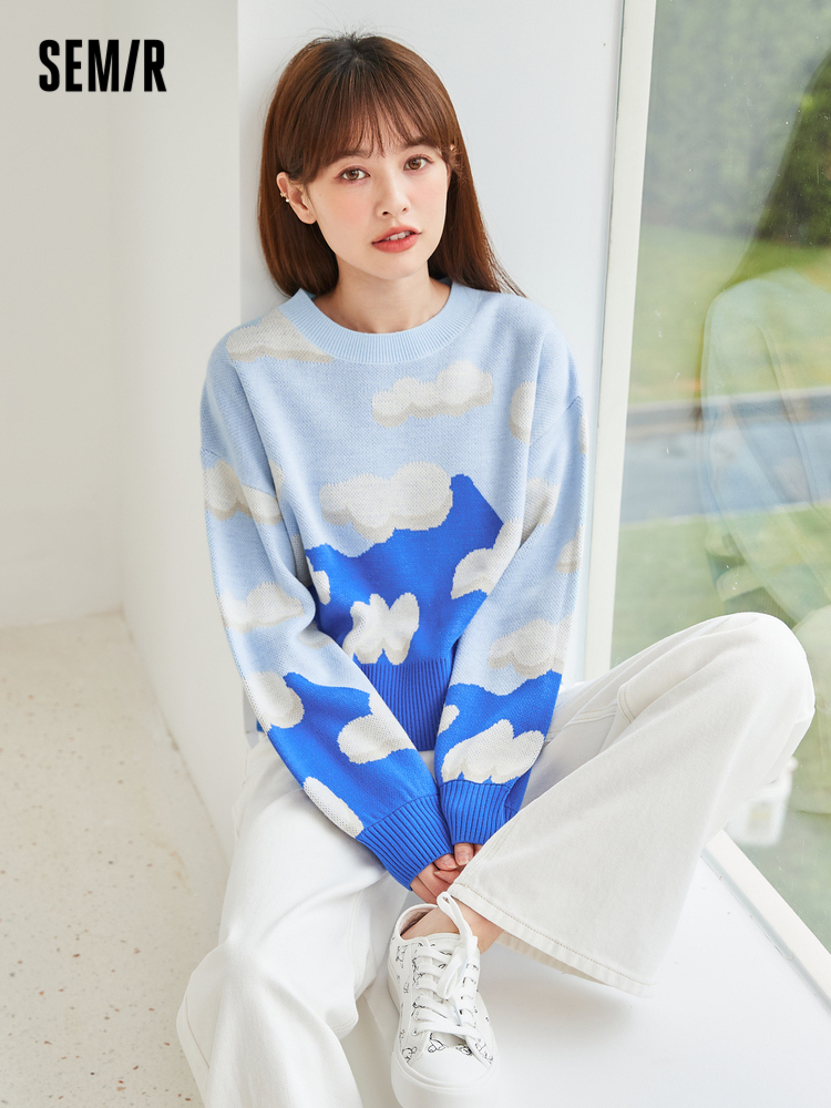 Semir, осенний кремовый трикотажный японский свитер для отдыха, коллекция 2021, оверсайз