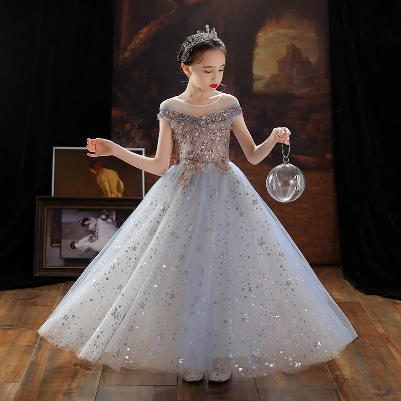 Наряд маленькой принцессы, наряд для музыкальных выступлений, платье девочки цветочницы, свадебное платье, из фатина, в западном стиле