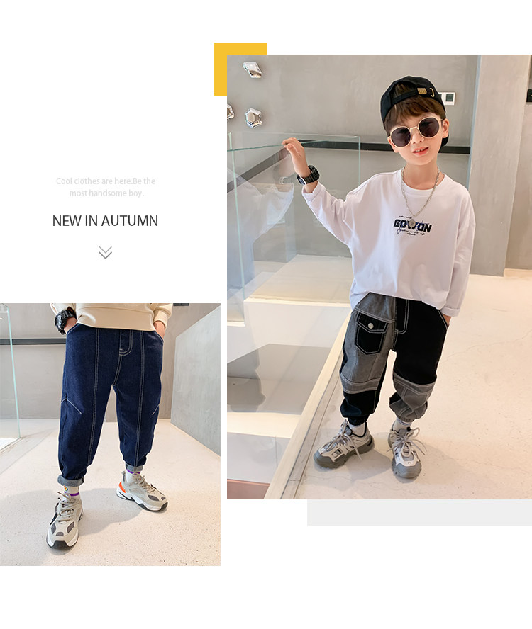 左西 Летняя одежда, осенние джинсы, детские штаны, подходит для подростков, в корейском стиле