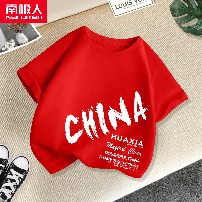 Футболка для мальчиков, красный детский хлопковый костюм, короткий рукав, коллекция 2022, подходит для подростков