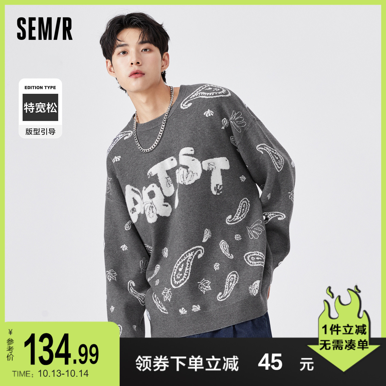 Semir, осенний трендовый трикотажный свитер, в американском стиле, коллекция 2021, оверсайз