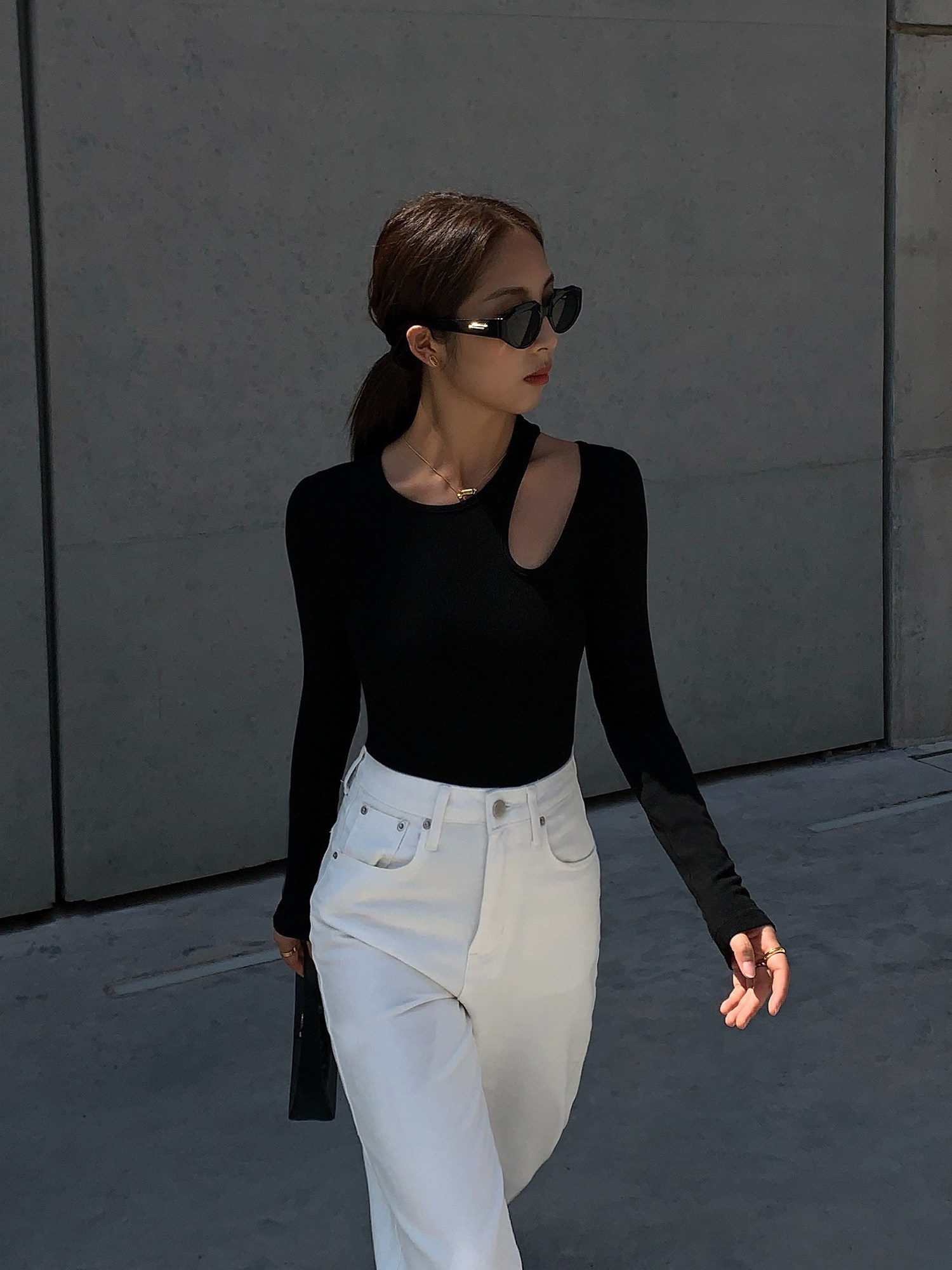 Черный дизайнерский лонгслив, приталенный базовый приятный телу свитер, тренд сезона