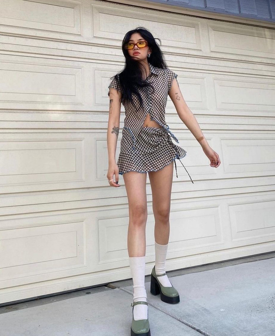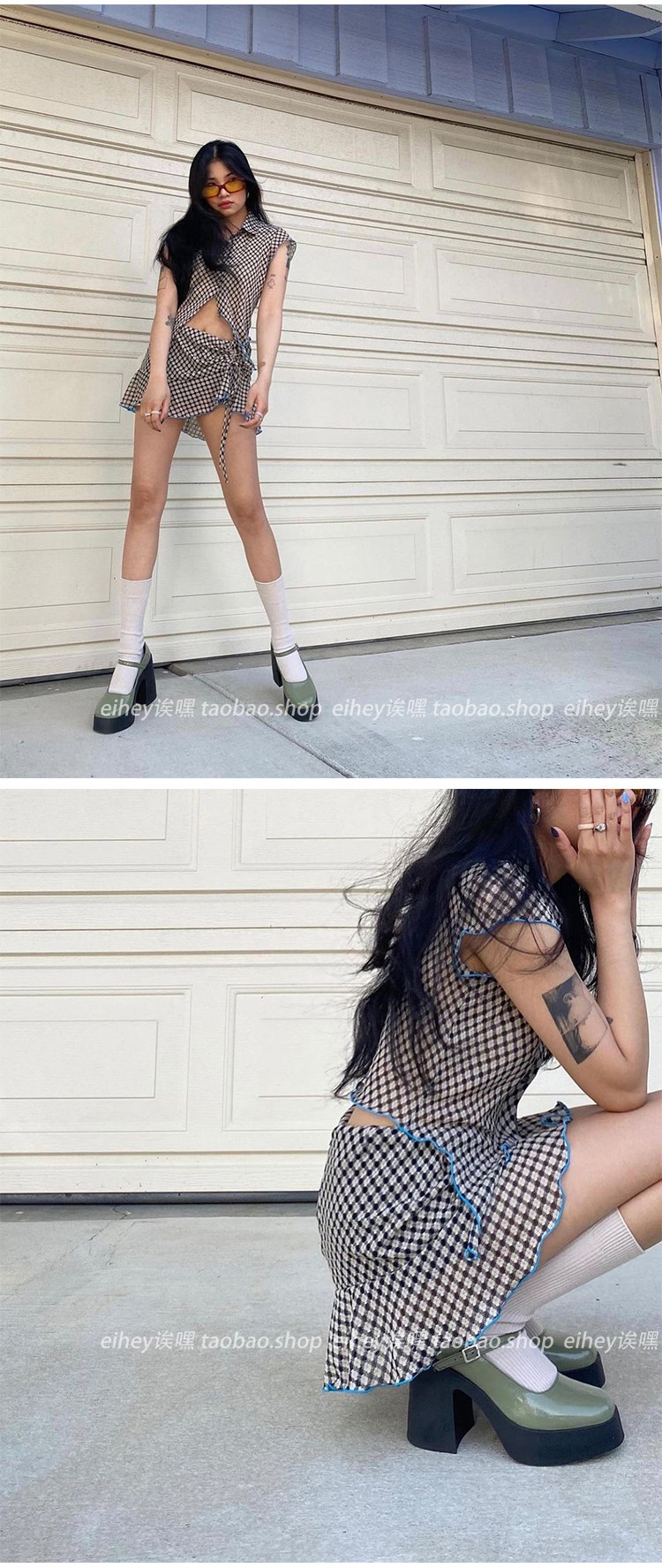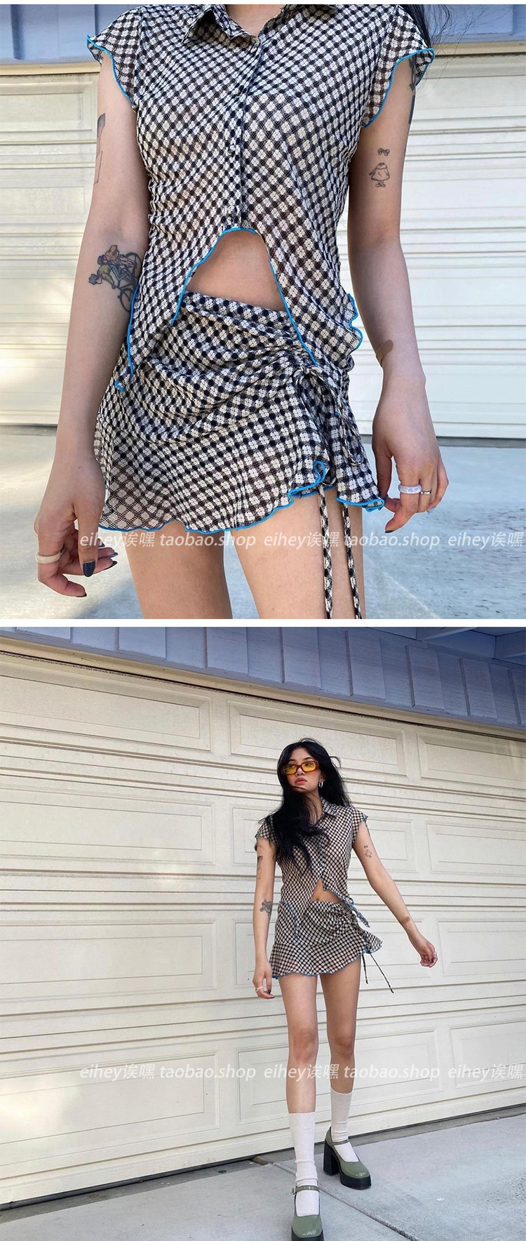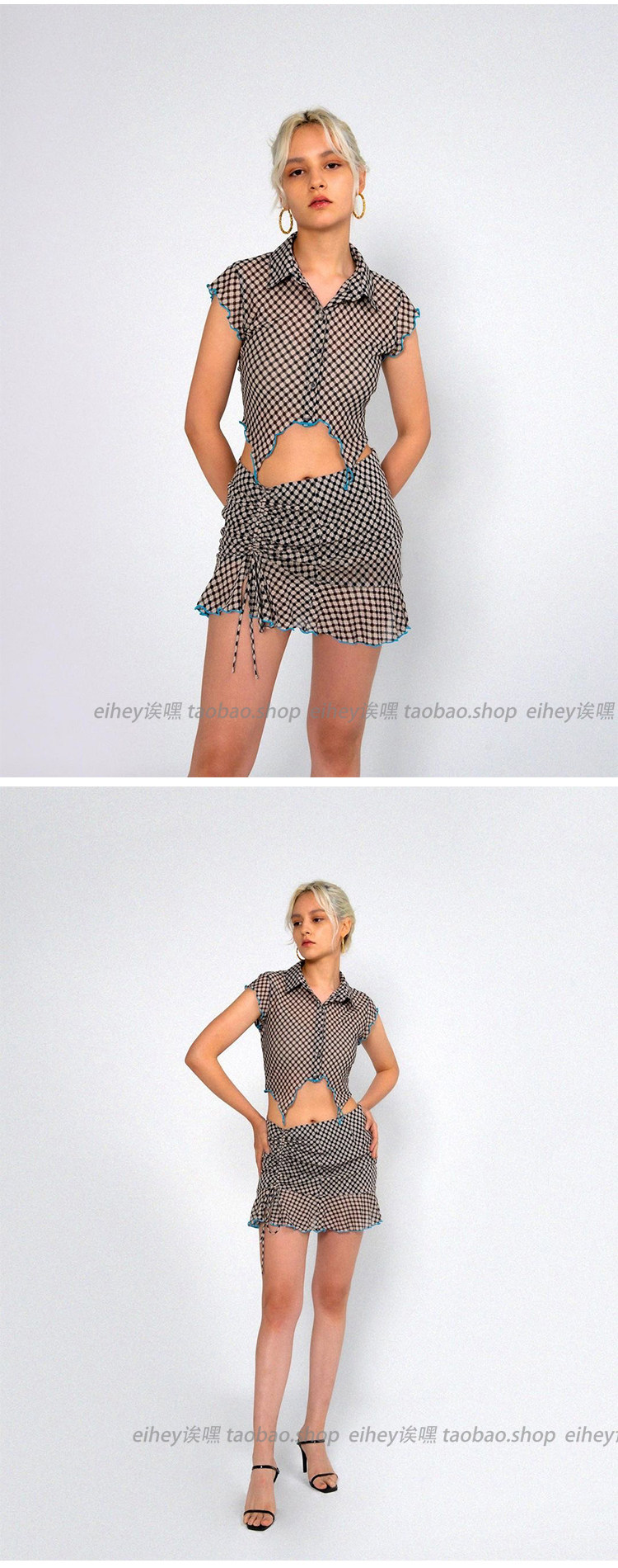 Эйхей, эй [70 % скидка скидка] Горячая девушка сетка сетка сетка лотос лотос лист веревка высокая талия с высокой талией Дженни та же самая юбка