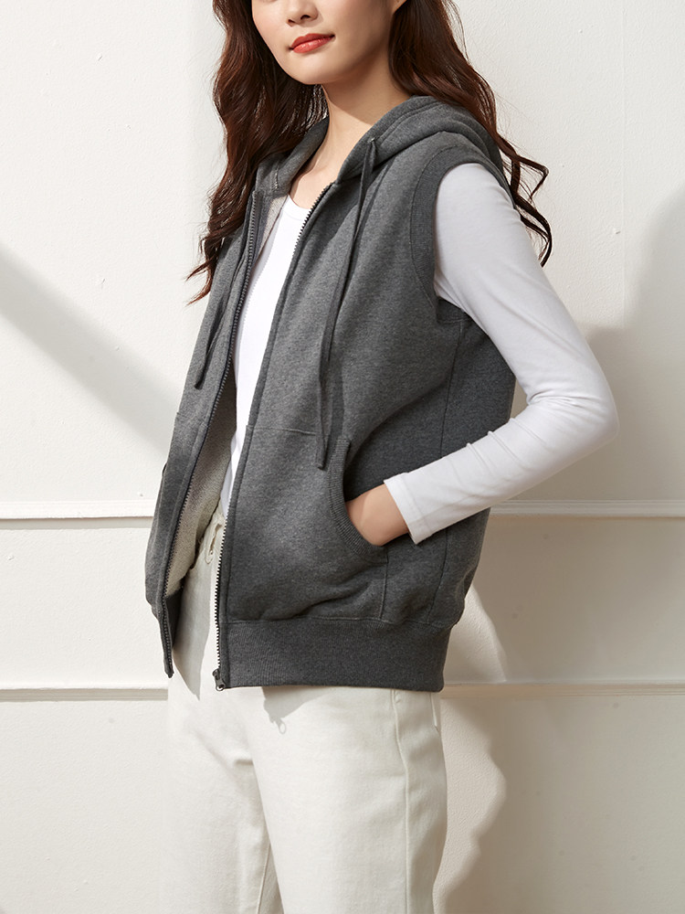 Осенний демисезонный спортивный жилет для отдыха, хлопковый тонкий кардиган с капюшоном с молнией, толстовка без рукавов