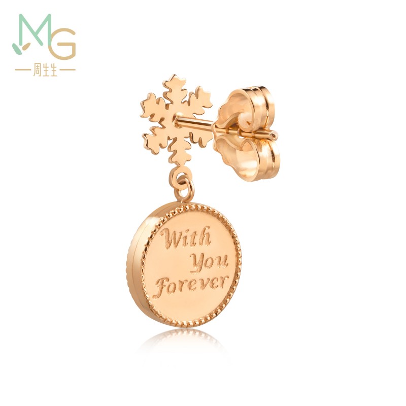 周生生 [18K金薄荷系列一鹿有你雪花小鹿贝母单只耳钉92826E]