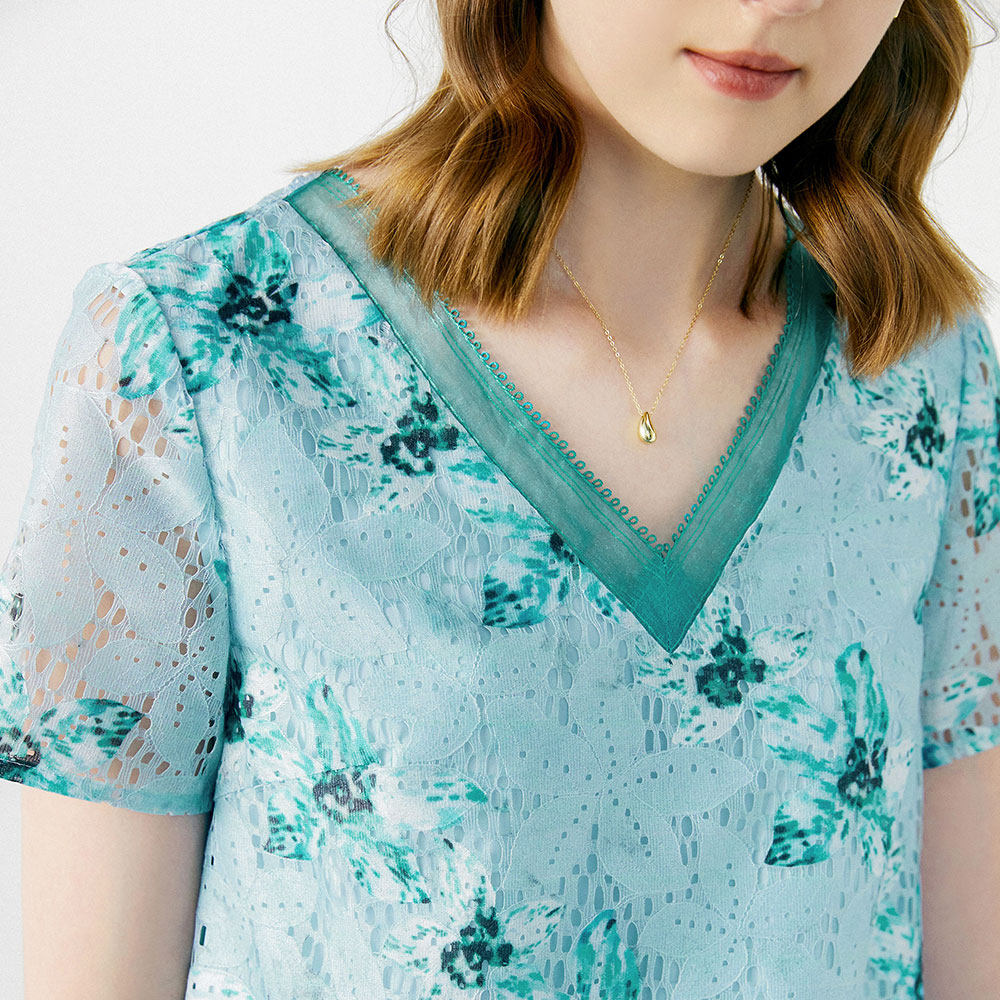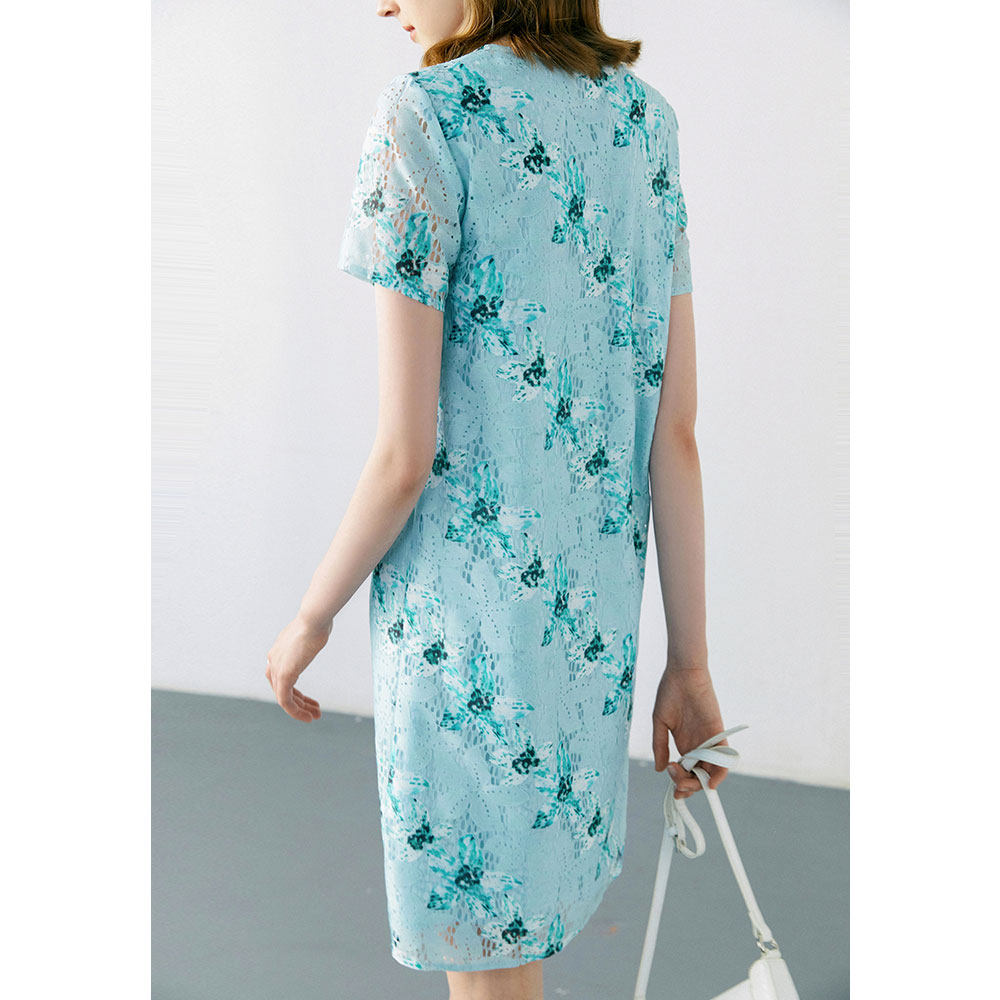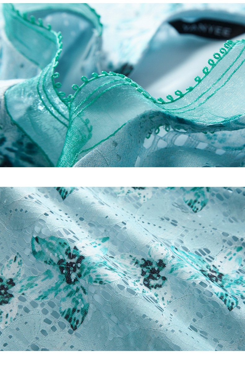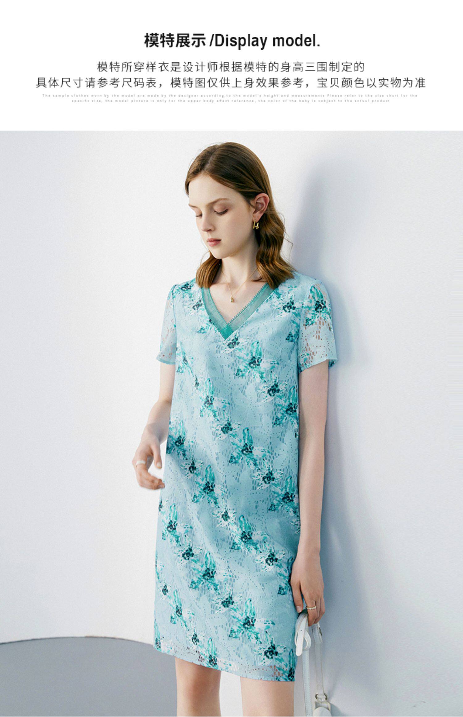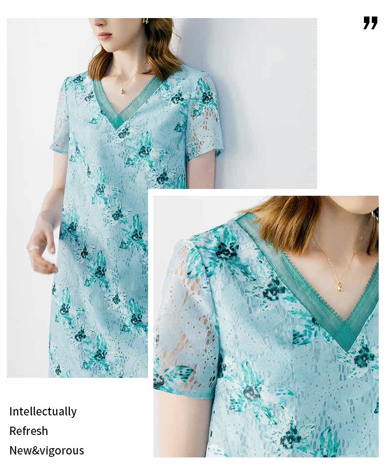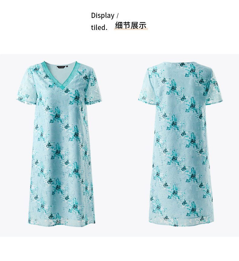 颜域 Кружевное летнее платье, длинная юбка, короткий рукав, V-образный вырез, свободный прямой крой, стройный силуэт, средней длины