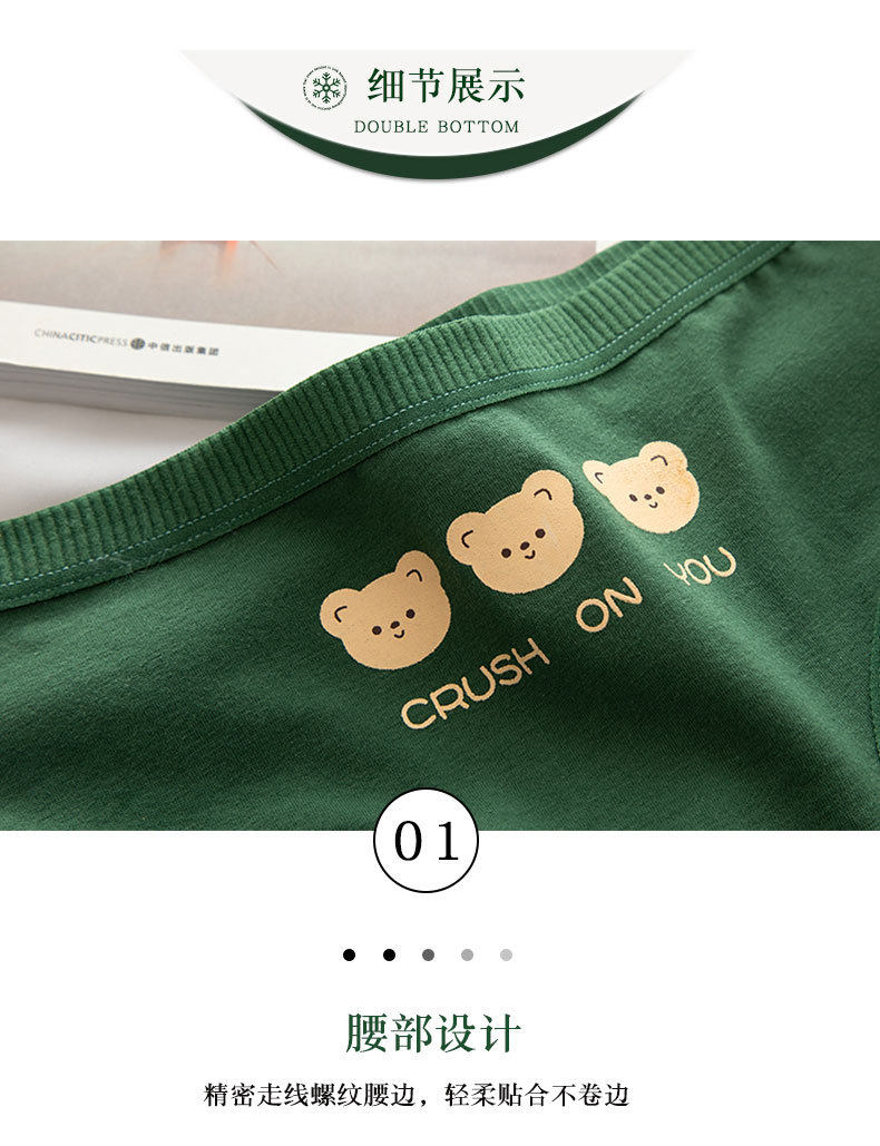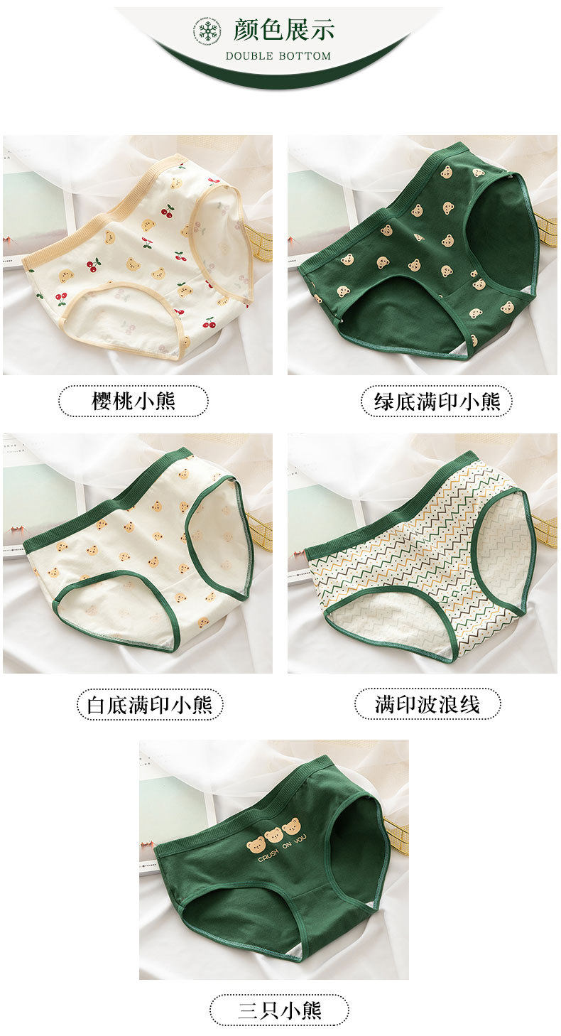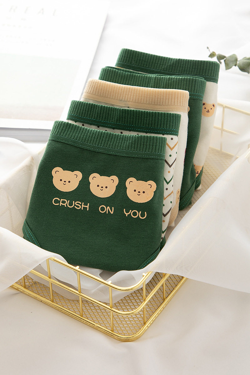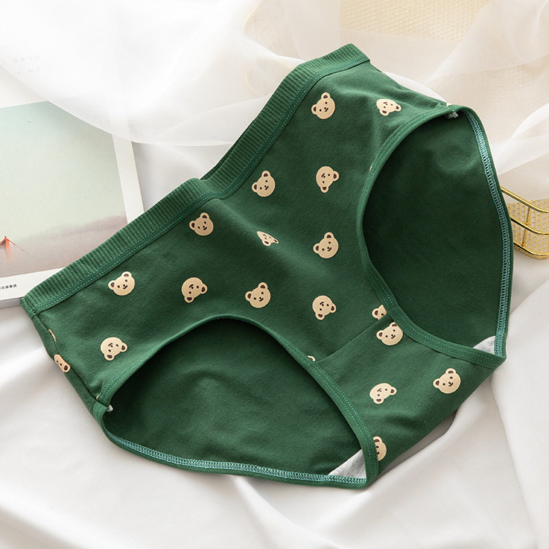Хлопковое японское милое зеленое нижнее белье, мультяшные штаны для школьников и студентов, средняя посадка, с медвежатами